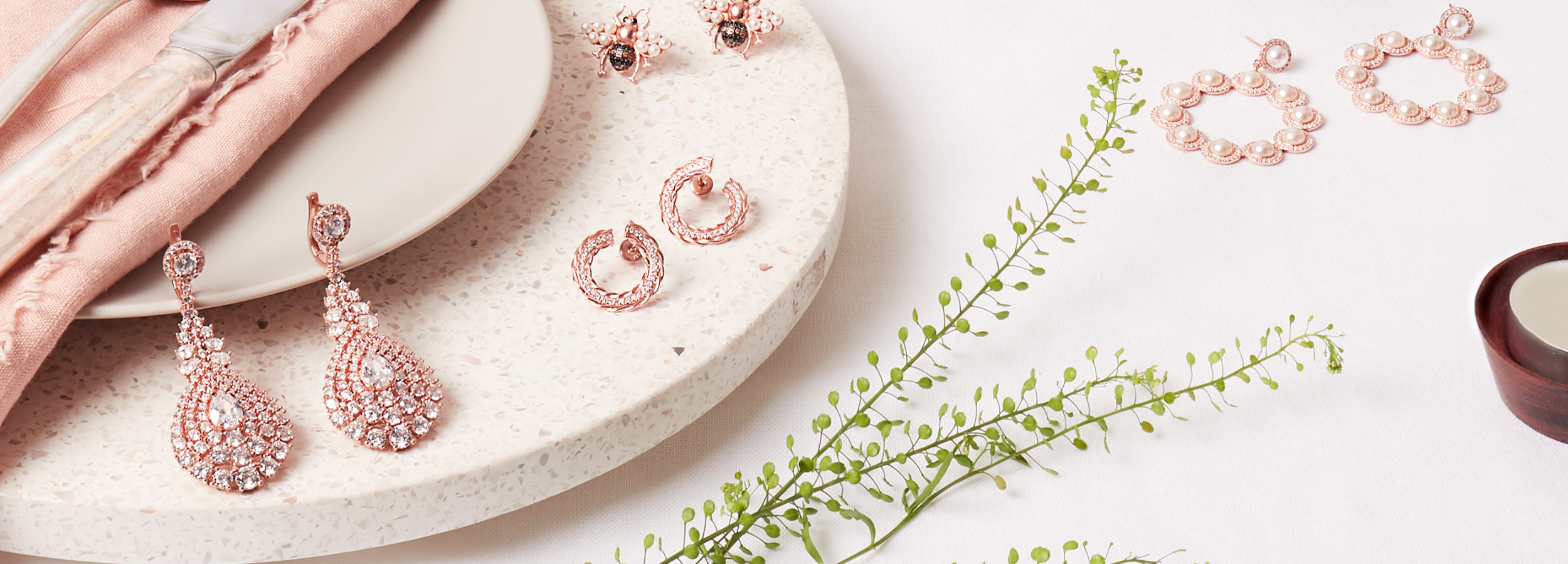 Verleihen Sie Ihrem Brautlook einen warmen, eleganten Glanz mit roségoldenem Hochzeitsschmuck, der vom Gang bis zur Afterparty glänzt
