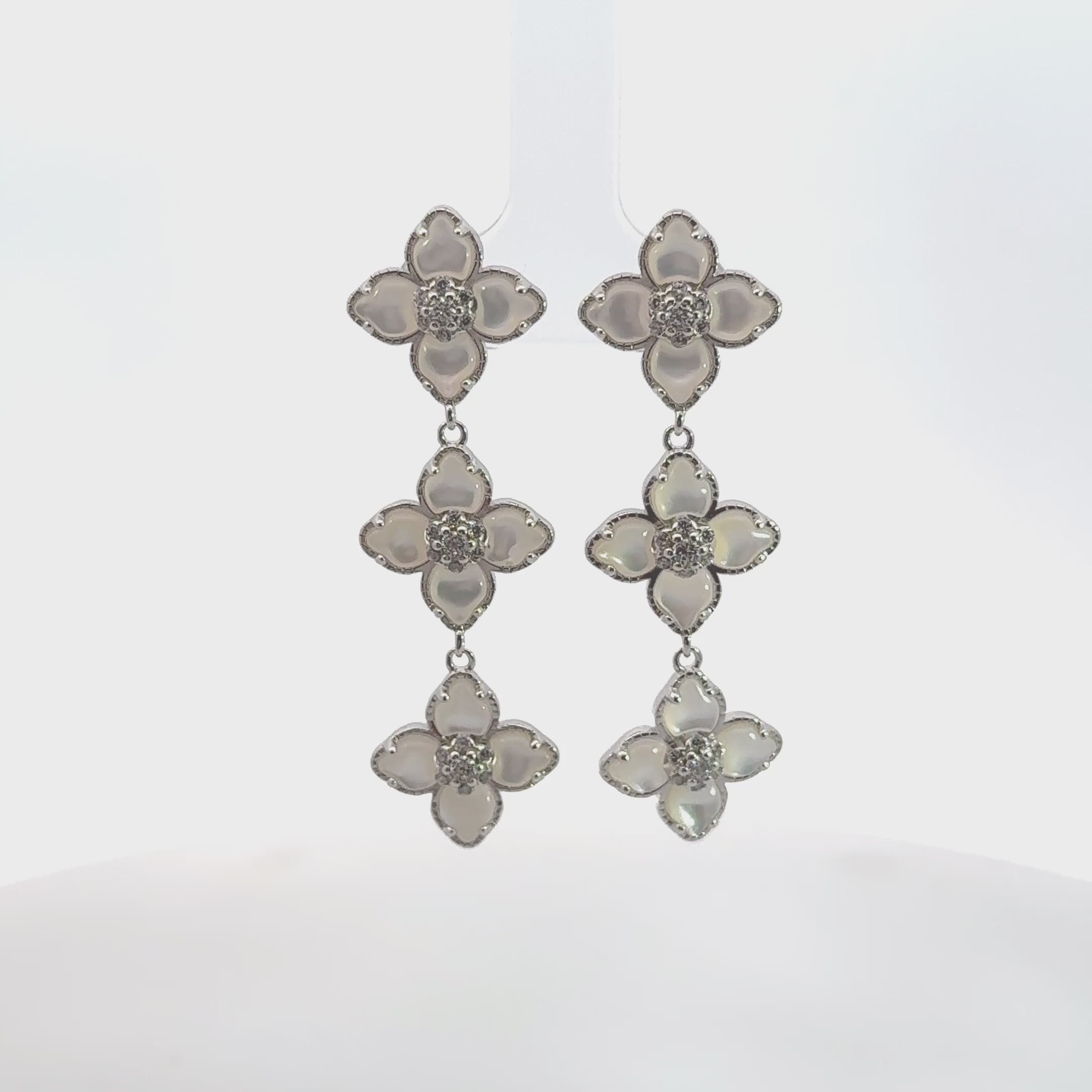 Flower Clover Triple Drop Earrings Mother Of Pearl Silver