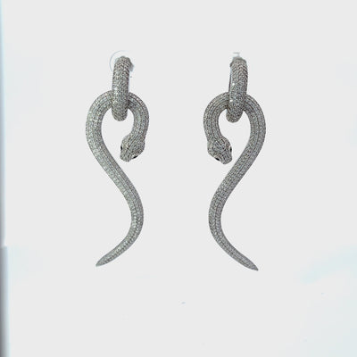 Anaconda Snake Drop Earrings Silver White - LATELITA Earrings
