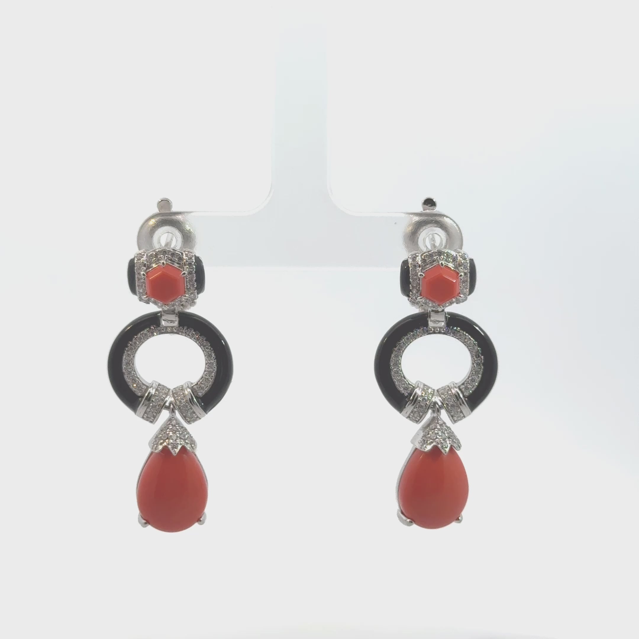 Clara Bow Coral & Enamel Drop Earrings Silver