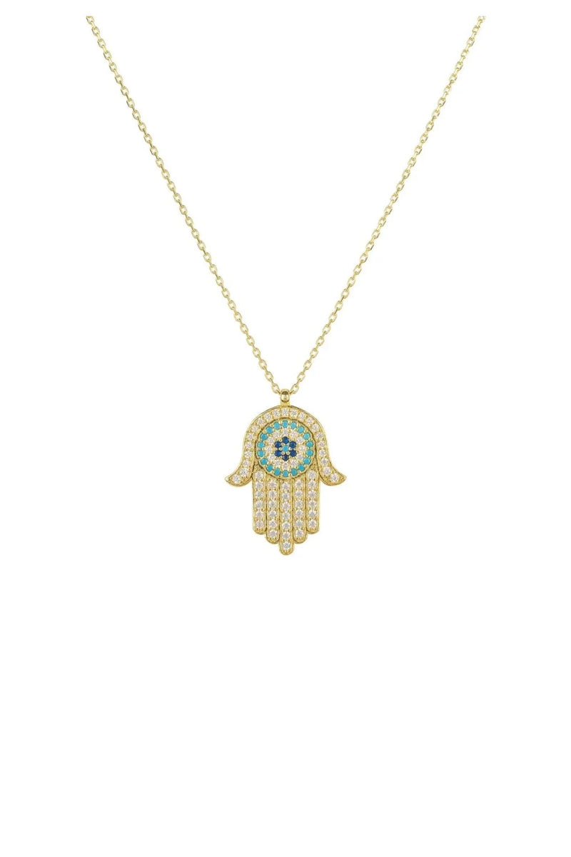 Hamsa Hand With Evil Eye Pendant Necklace Gold Sale price€92,95