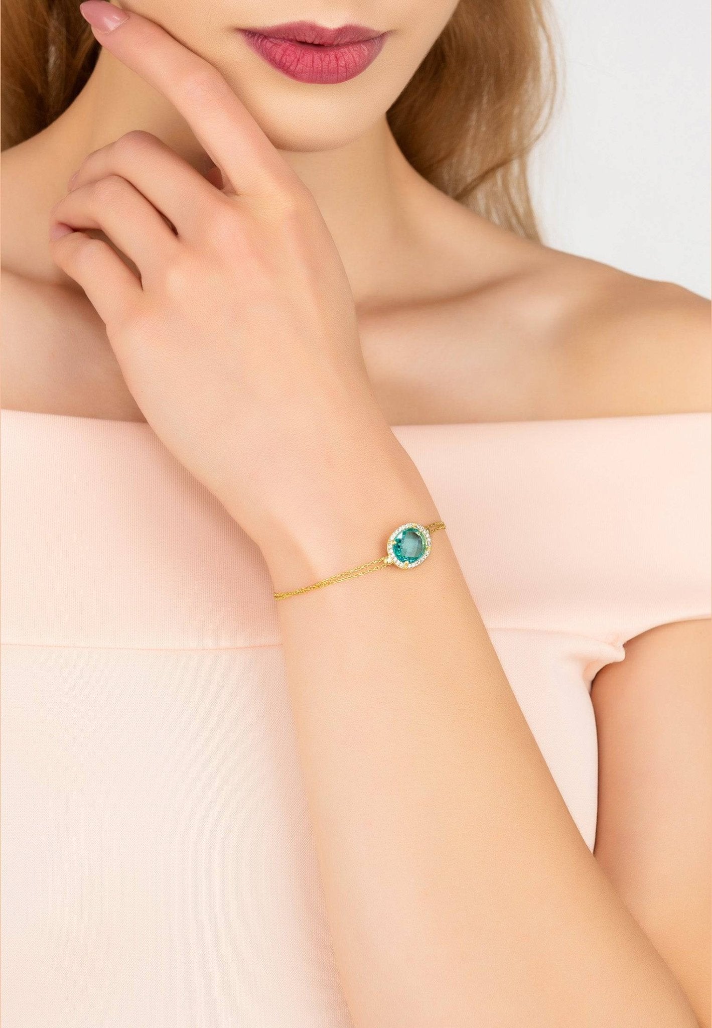 Welcome to the world of luxury with the Beatrice Oval Gemstones Bracelet! Designed with expert craftsmanship, this fabulous bracelet is all about understated elegance that's full of sparkle. Crafted with a multifaceted oval blue Topaz gemstone and exquisite cubic zirconia detail, this piece radiates light and captures attention wherever it goes.