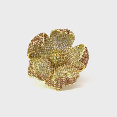 This large poppy cocktail ring is adorned with sparkling cubic zirconia, in graduated shades of yellow through to white on the petals and zesty lemon at its centre, made in a three dimensional style for added interest, which will add a touch of sophisticated style to any outfit.
