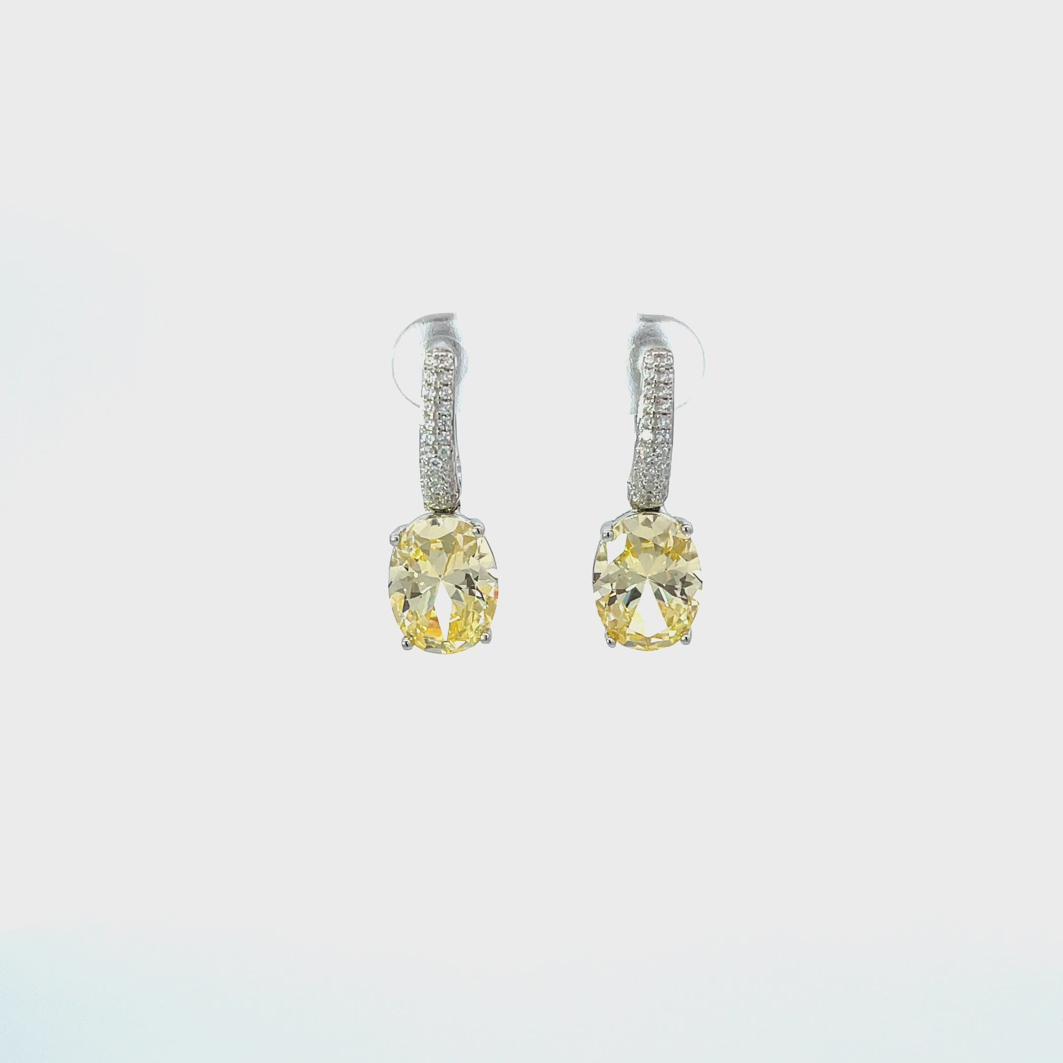 Alexandra Oval Drop Earrings Silver Yellow Topaz