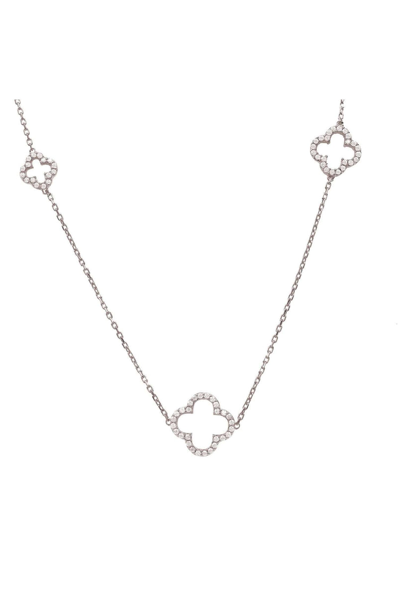 Open Clover Long White Cz Necklace Silver