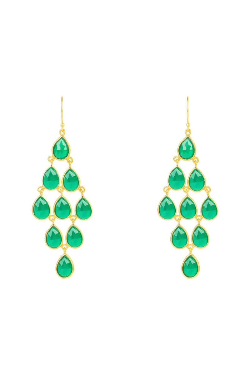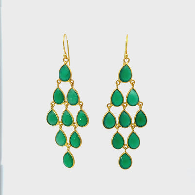 Erviola Gemstone Cascade Earrings Gold Green Onyx