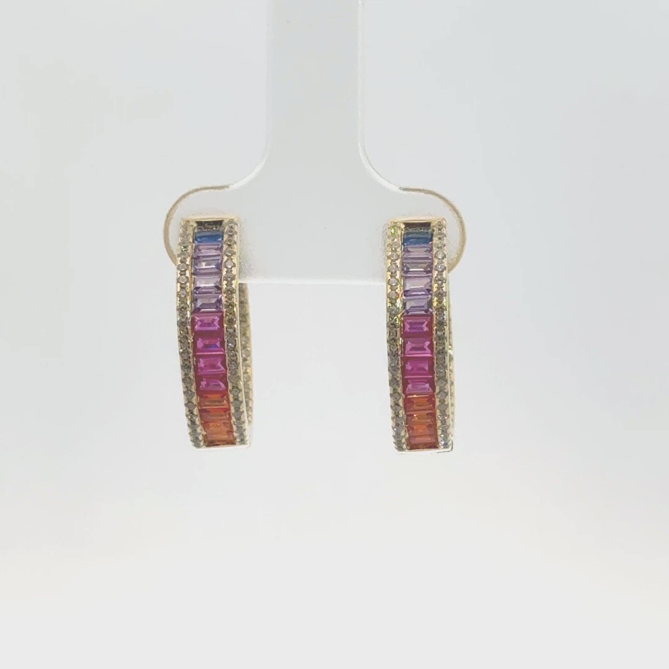 The highlight of these earrings is the vivid array of baguette cut zircons that bring a joyful burst of colour, sparkling beautifully with every movement. The outer edges are finished with rows of white cubic zirconia, adding a touch of classic brilliance to the colourful display.