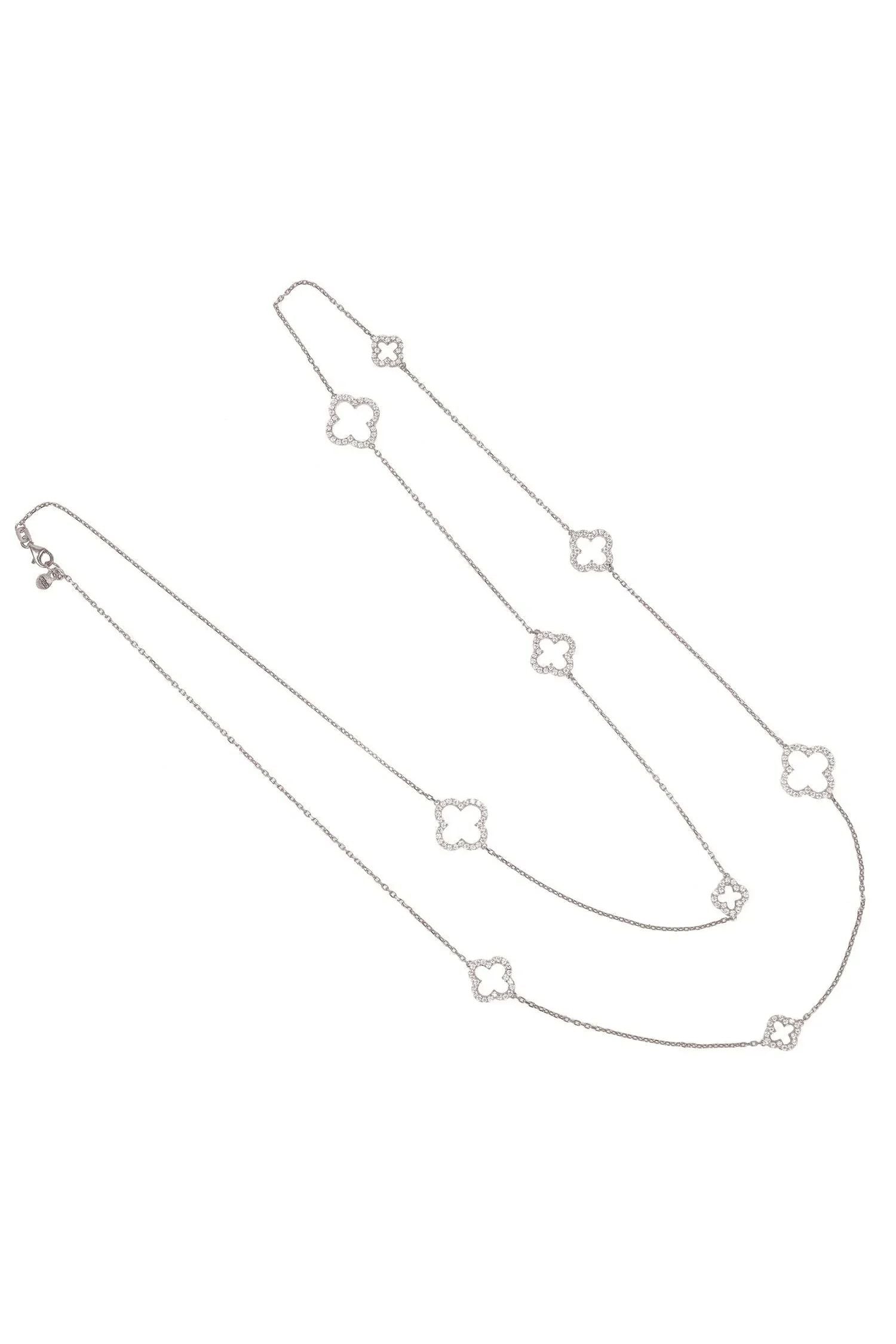 Why not add a little good fortune to your look with our Open Clover Long White Cubic Zirconia Necklace Silver?