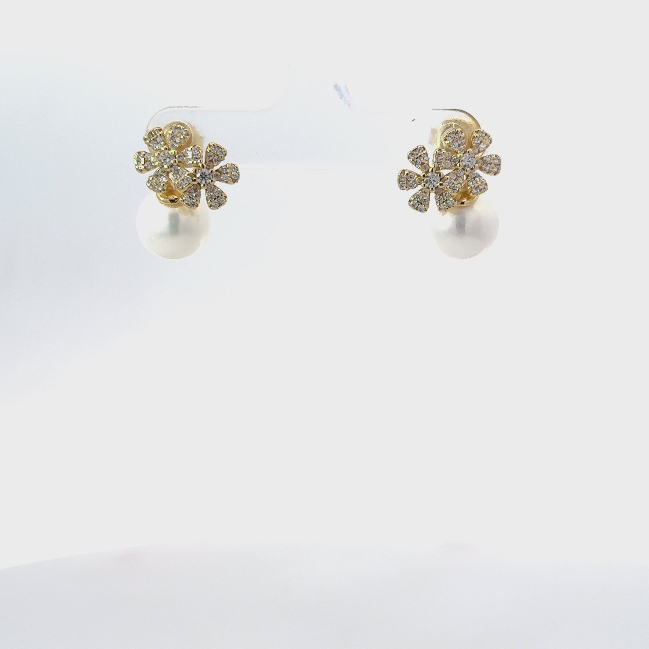 Estos bonitos aretes presentan un motivo de doble flor adornado con circonitas cúbicas brillantes, asentadas sobre una perla fija , que agregará un toque de estilo sofisticado a cualquier conjunto.
