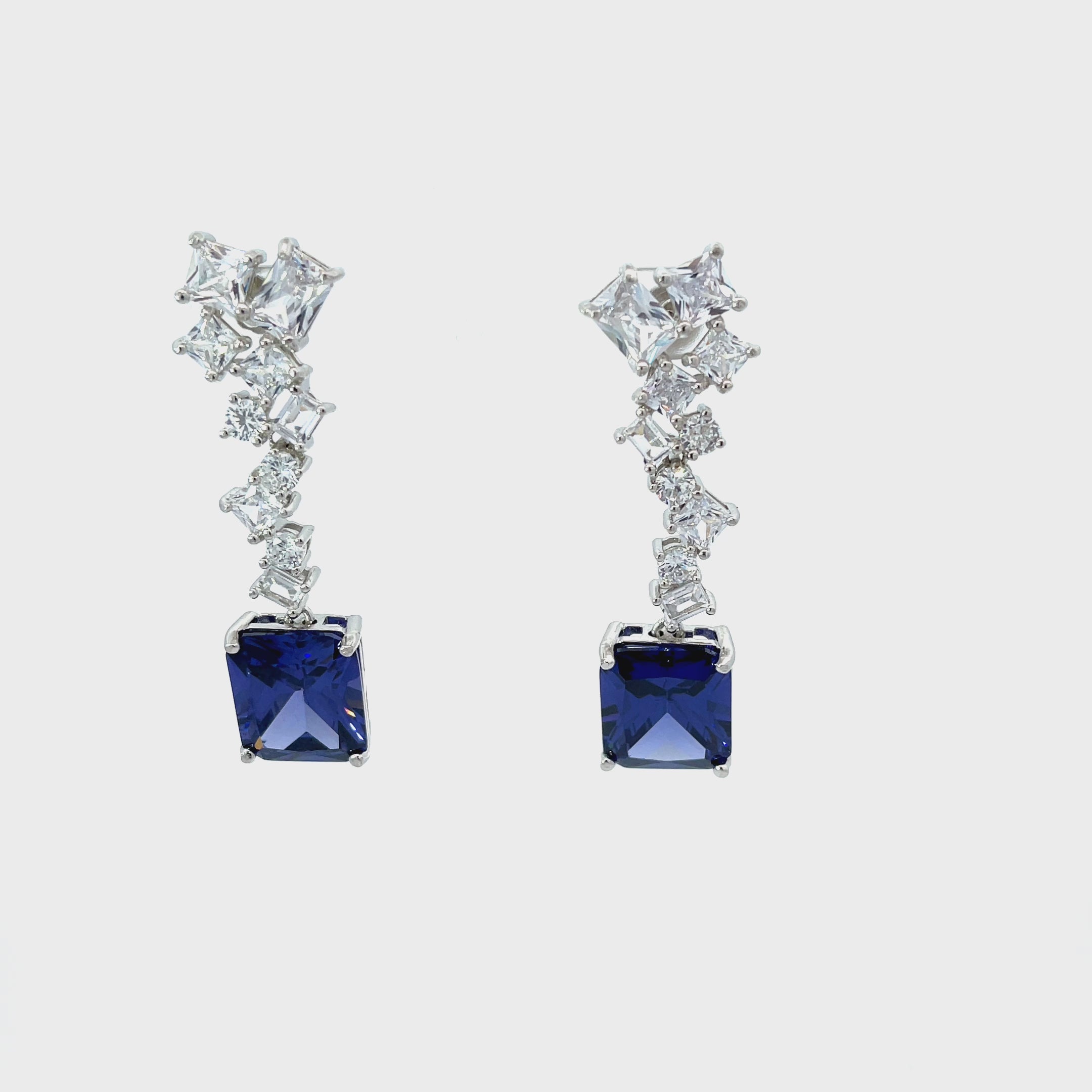 Esta pieza está hecha a mano en plata de ley 925. Una gran piedra preciosa de tanzanita rectangular cuelga de un intrincado engaste con un diseño en zig-zag, adornado con diamantes de imitación, lo que hace que estos aretes sean aún más especiales. ¿Por qué no añadir un toque de lujo y color a tu atuendo con el intenso azul de la tanzanita? Con solo 15 gramos, estos llamativos aretes son livianos y lo suficientemente cómodos para usarlos durante todo el día. Miden 4,7 cm de largo y 1,2 cm de ancho, ¡rápidamente se convertirán en tu par favorito!