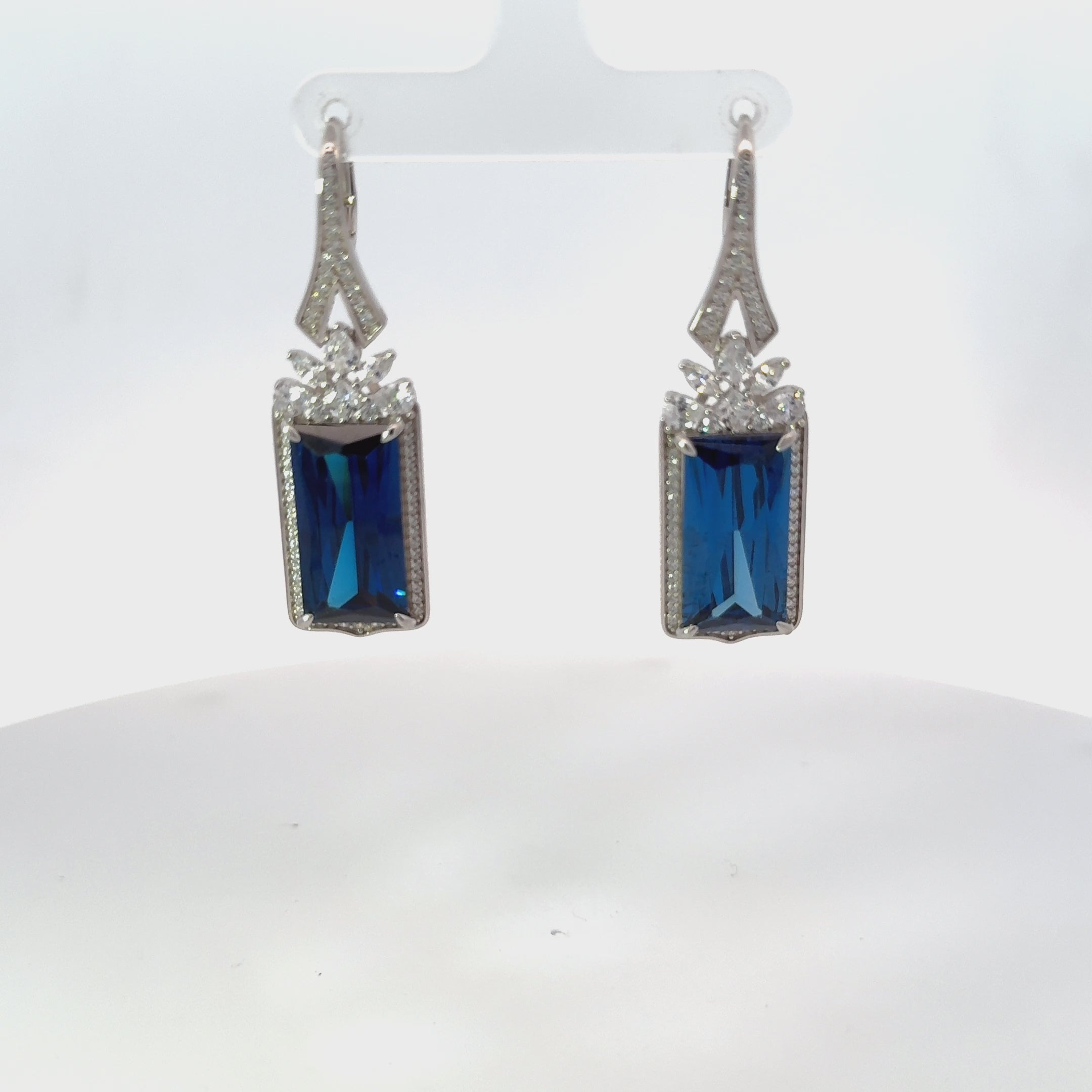 Presentamos los pendientes Evangeline en plata zafiro: una obra maestra de elegancia y brillo. Estos llamativos pendientes lucen un zafiro rectangular alargado, cultivado en laboratorio, que irradia un azul profundo y cautivador. El zafiro está lujosamente engastado en una hilera de brillantes circonitas cúbicas, lo que le añade un toque extra de brillo.