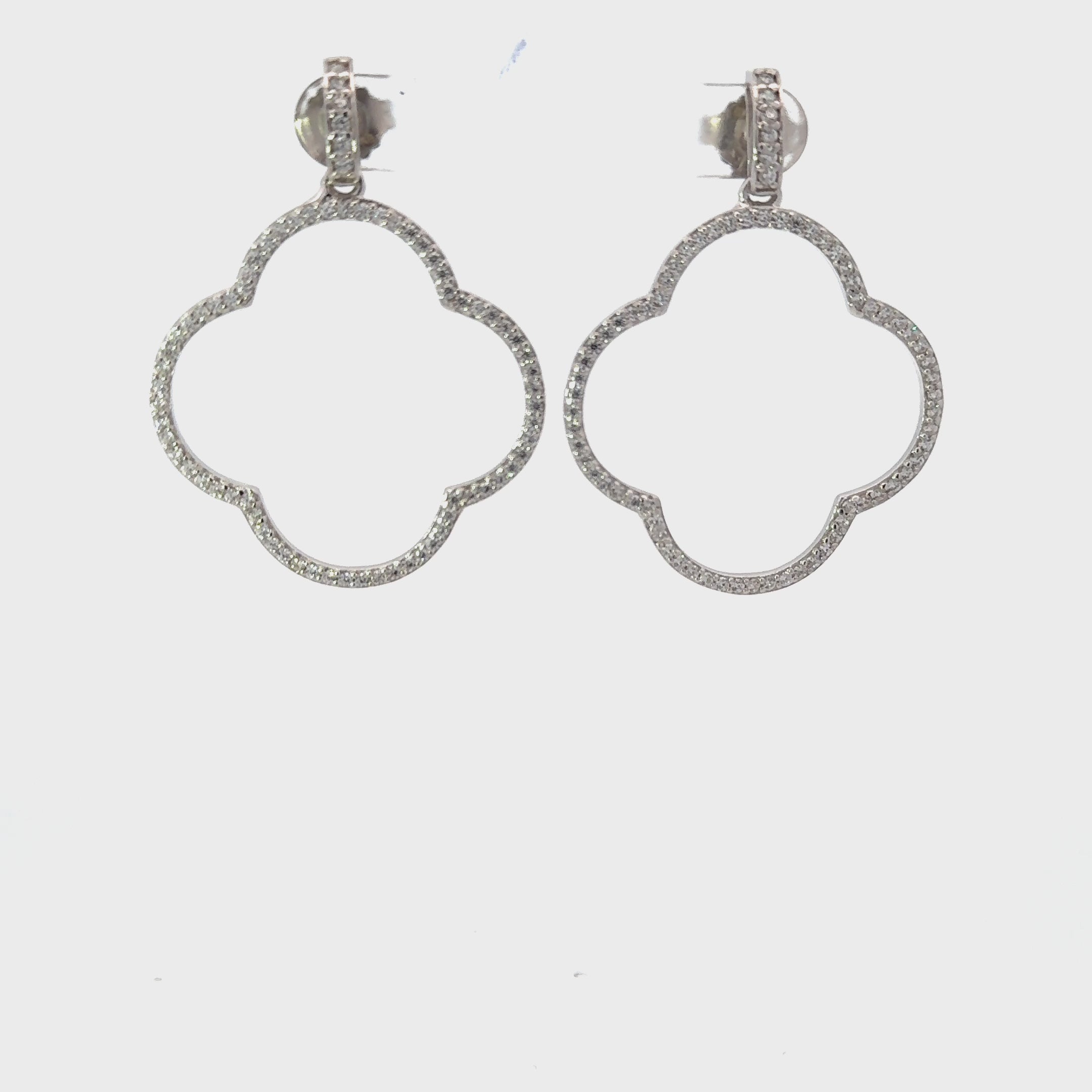 Open Clover Large Drop Earrings White Cz Silver - LATELITA Earrings