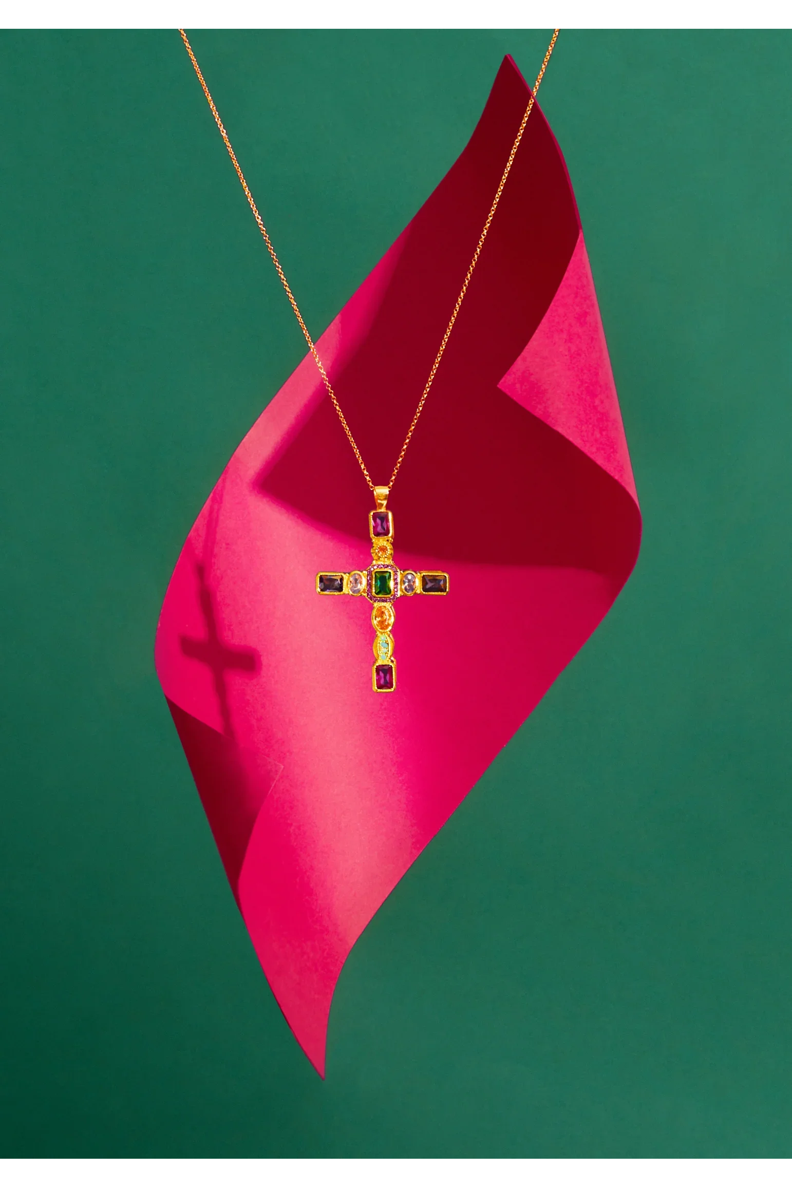 Santa Maria Extra Large Gemstone Cross Pendant Gold - LATELITA Necklaces
