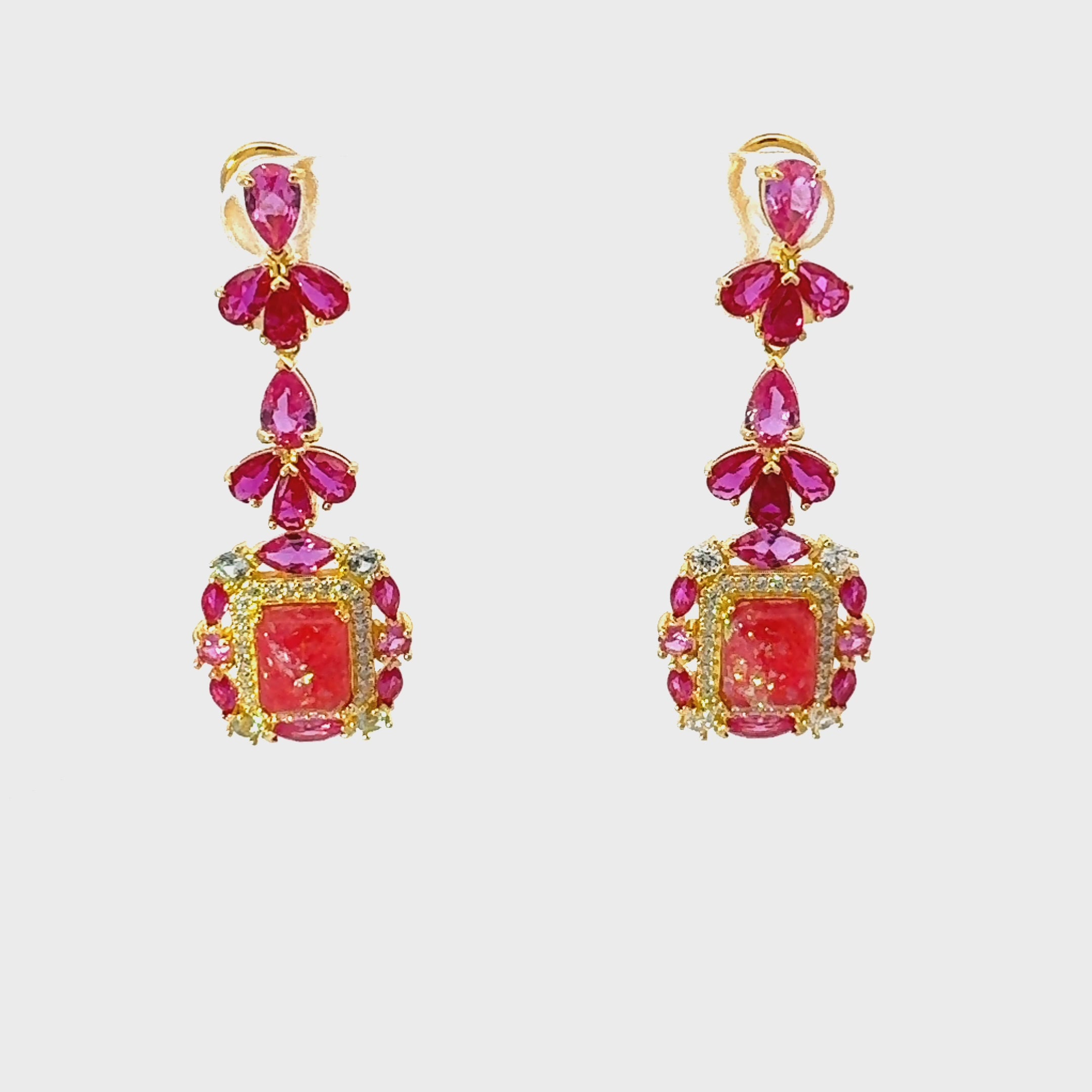 Con sus vibrantes tonos rosados ​​y su brillo lujoso, estos aretes son perfectos para cualquiera que busque agregar un toque de gracia femenina y sofisticación audaz a su look.
