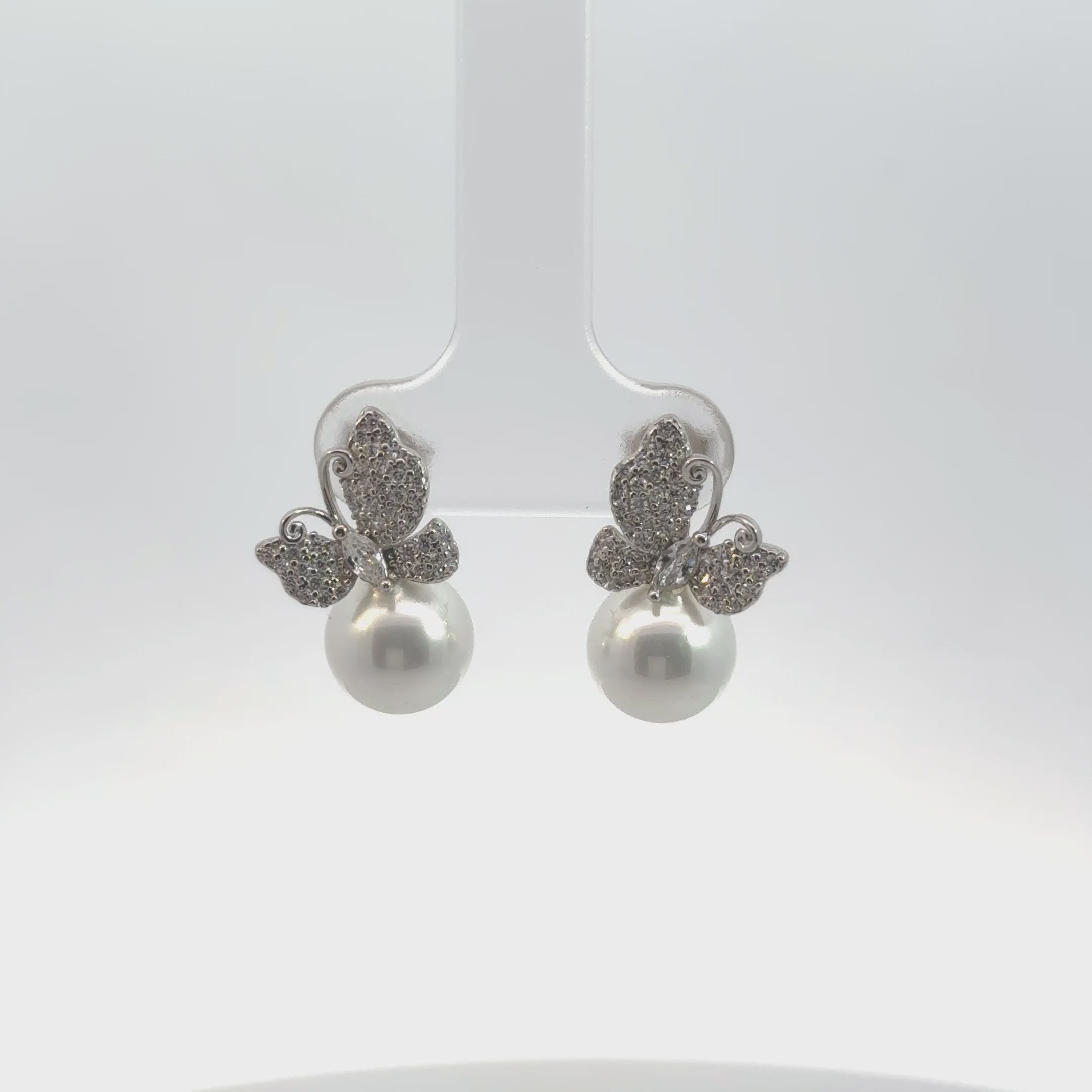 Pendientes colgantes de mariposa con perla y plata