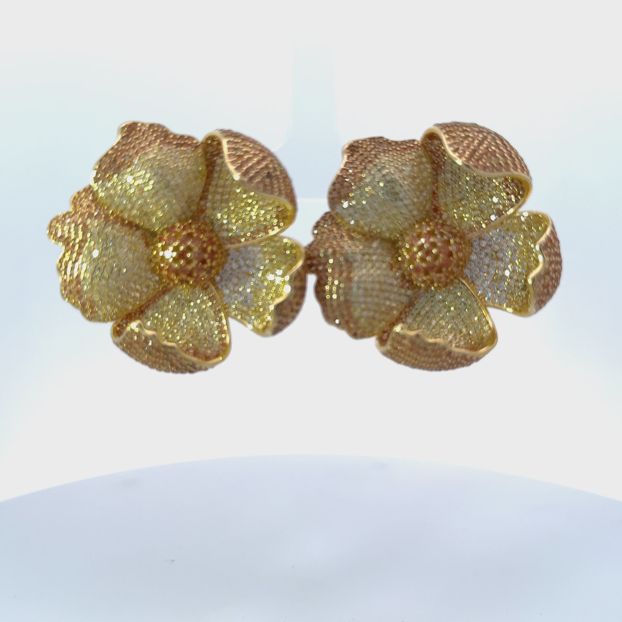 Estos grandes pendientes de amapola están adornados en cada pétalo con brillantes circonitas cúbicas en tonos degradados que van del amarillo al blanco. En el centro, destacan unas vibrantes circonitas de limón . Su diseño tridimensional les da un toque especial y sofisticado a cualquier look.