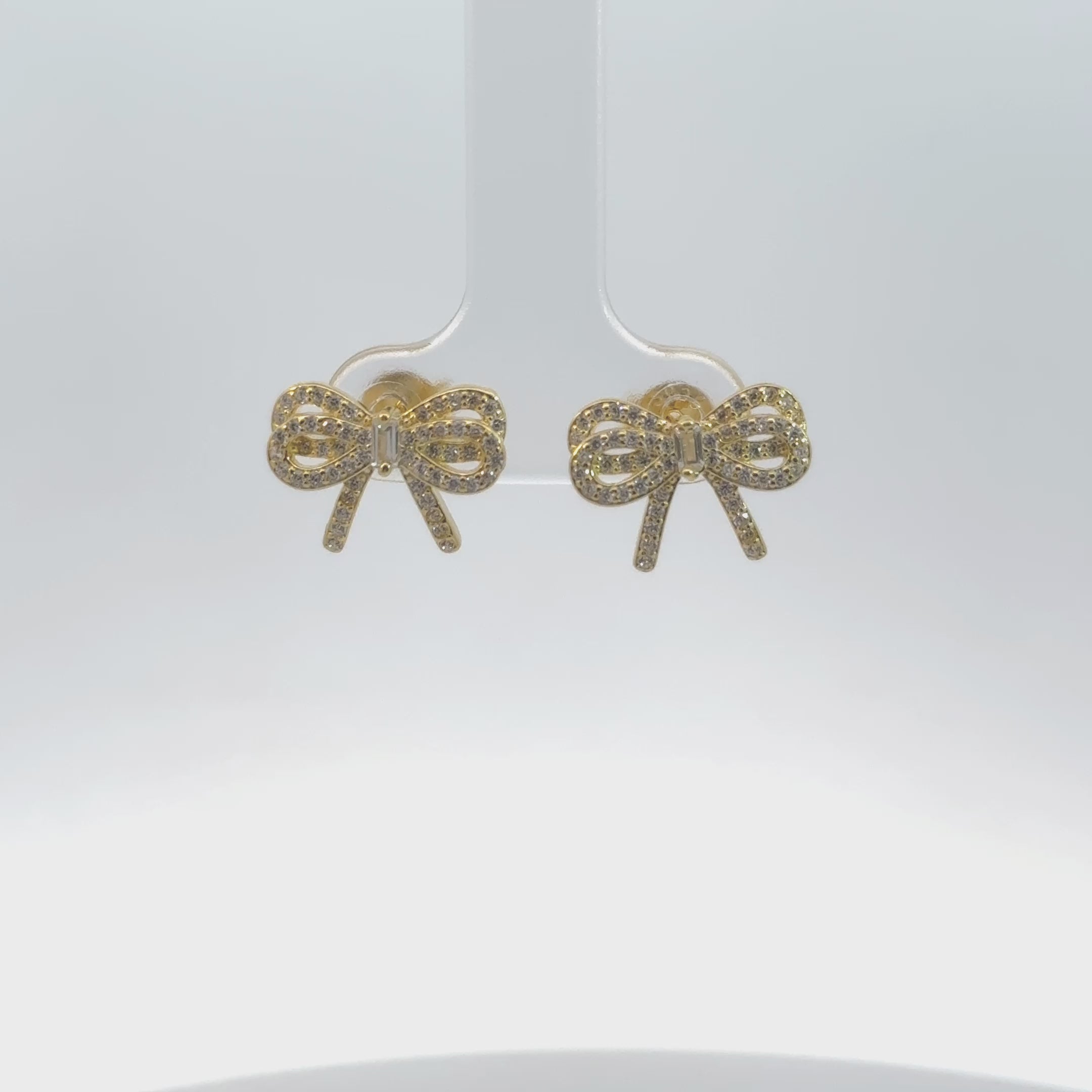 Delicate and full of charm, the Ribbon Stud Earrings in gold capture the grace of a perfectly tied bow — a timeless symbol of love, unity, and affection. Handcrafted from 925 sterling silver and luxuriously dipped in 18ct gold, each earring shimmers with a full pavé of cubic zirconia that catches the light with every movement.