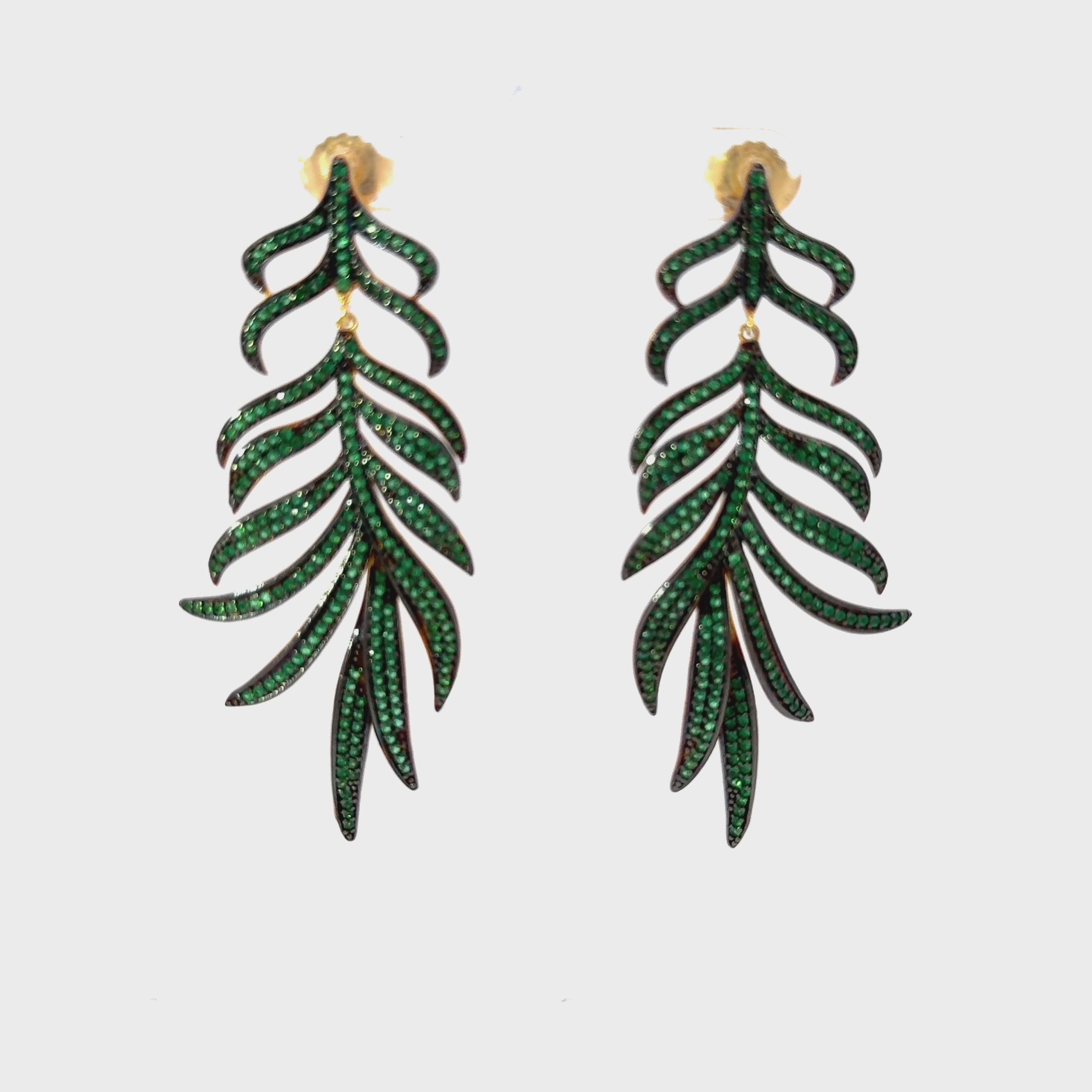 Pendientes colgantes llamativos con hojas emplumadas y circonitas verdes