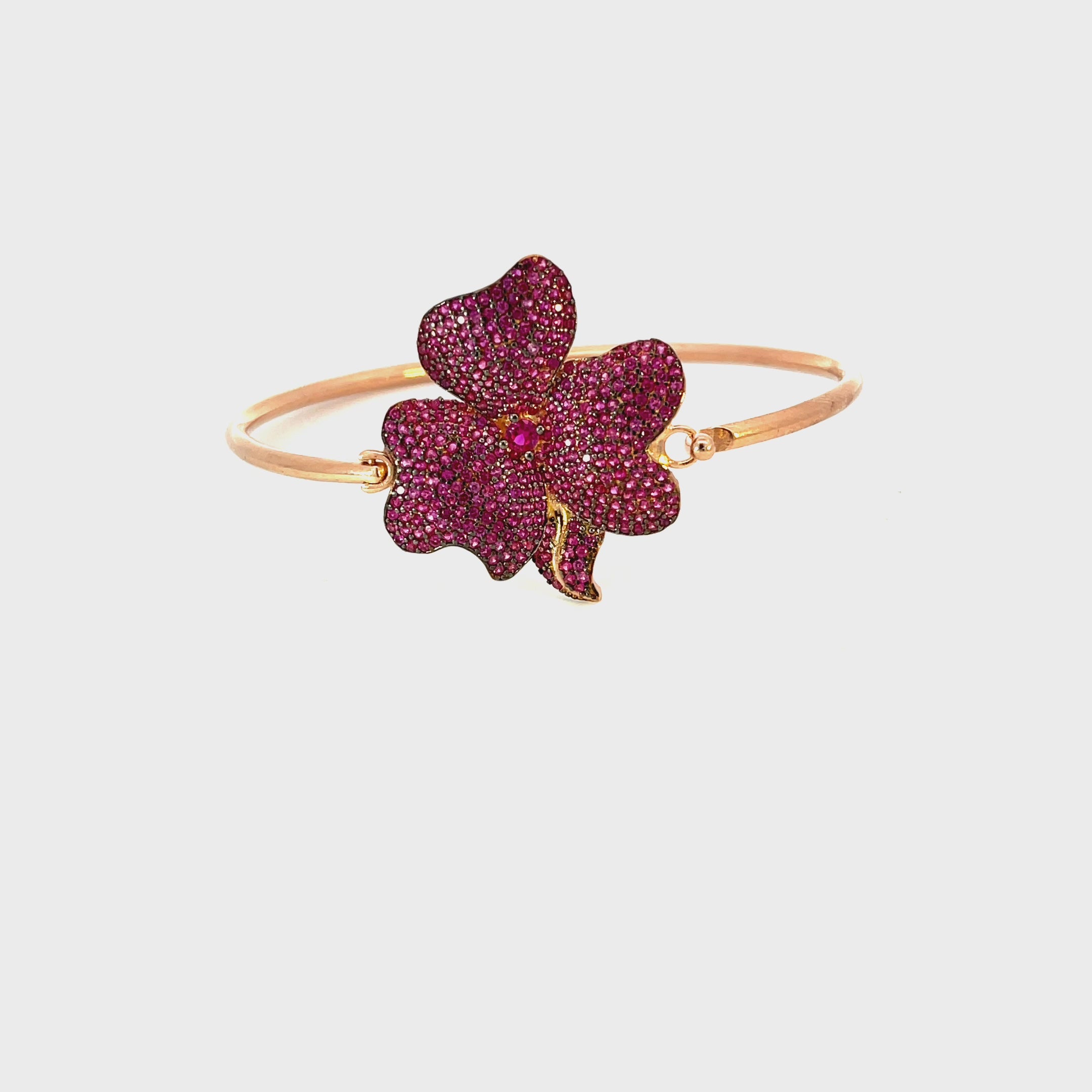 Brazalete llamativo grande con flores en oro rosa y rubí