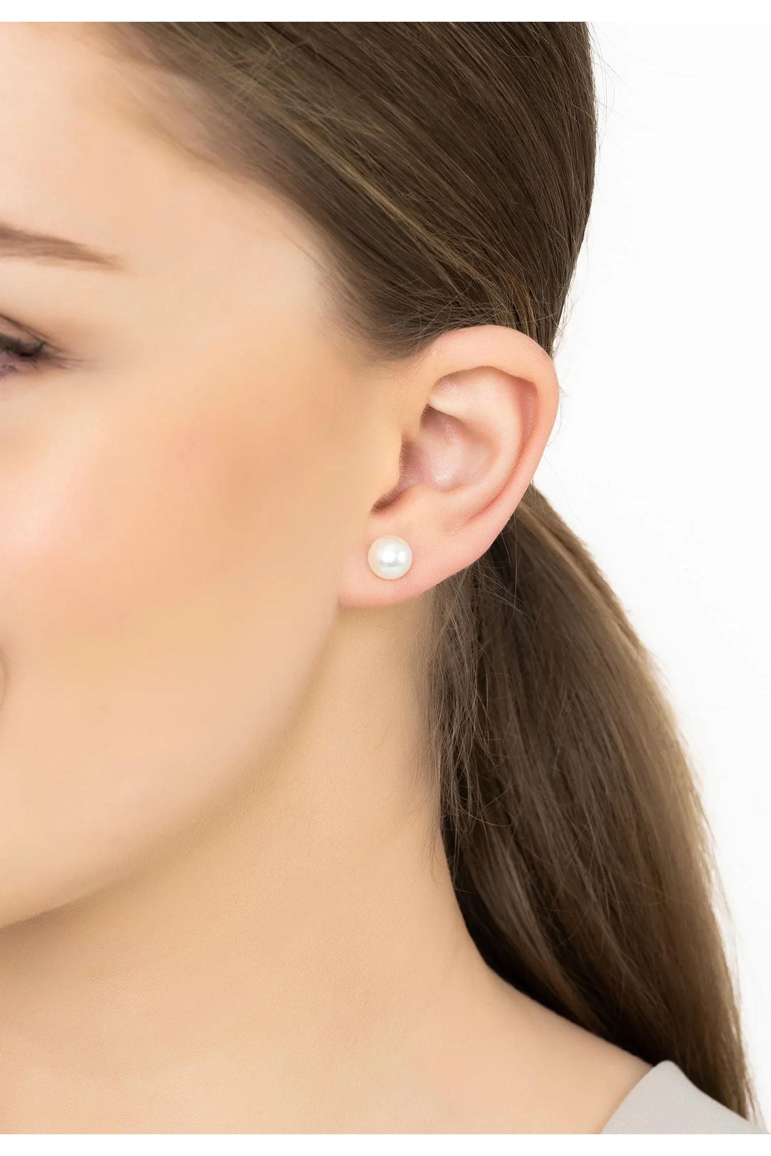Pendientes clásicos de perla natural de 8 mm en oro blanco macizo de 14 quilates