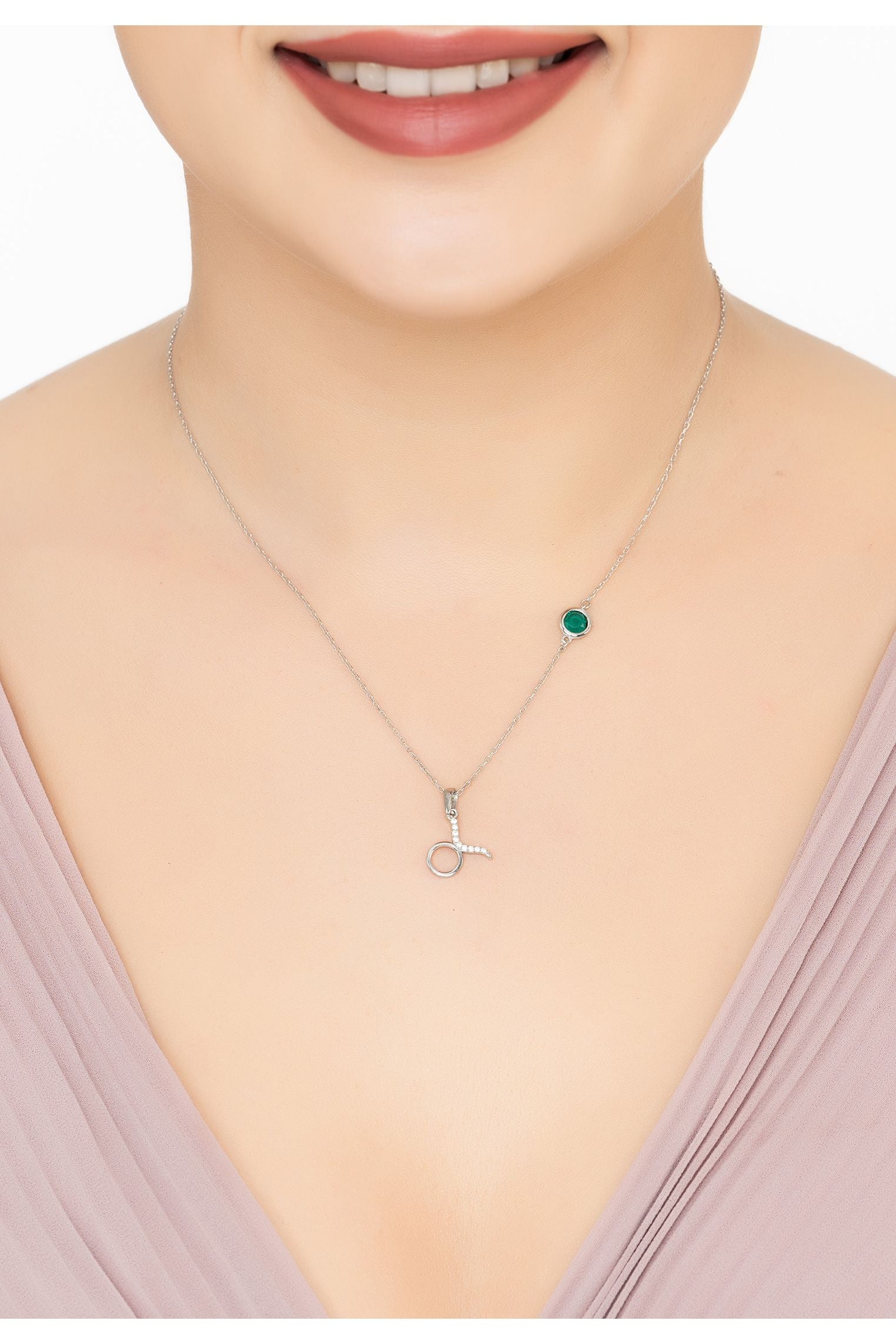 Elaborado con la mejor plata de ley 925, este collar presenta un colgante diseñado como la constelación de Tauro, bellamente incrustado con circonita cúbica para reflejar la fuerza y determinación inherentes del signo. Una esmeralda creada en laboratorio, que simboliza el crecimiento y la renovación, adorna la cadena, que es ajustable de 40 a 45 cm, y ofrece un toque de verde vibrante que complementa la sutil elegancia de la plata.