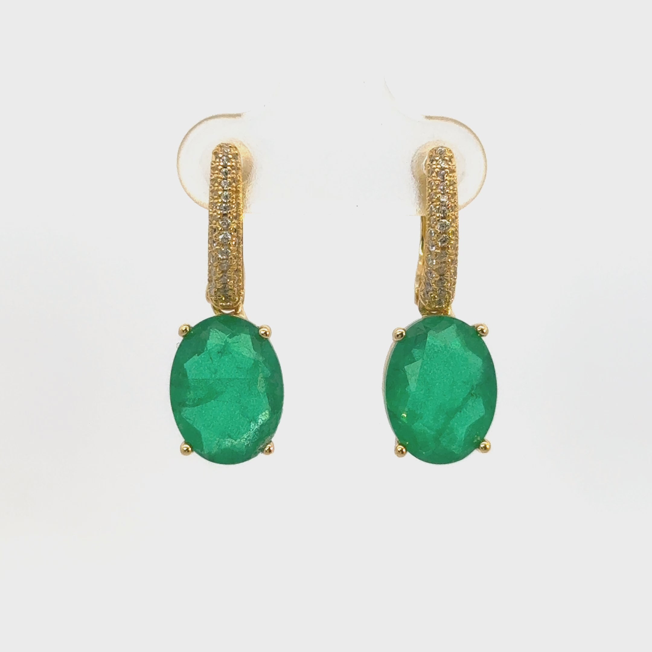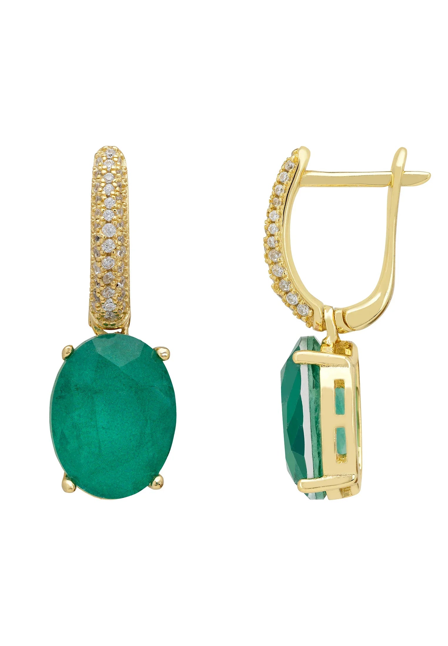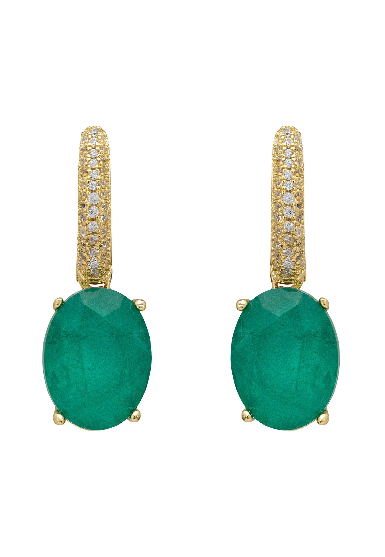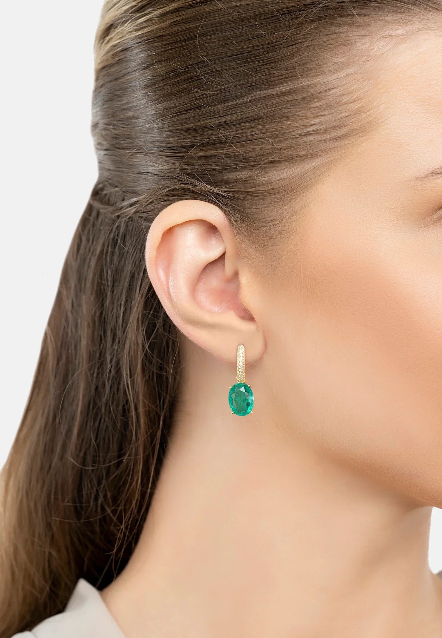 Alexandra Oval Drop Earrings Gold Colombian Emerald