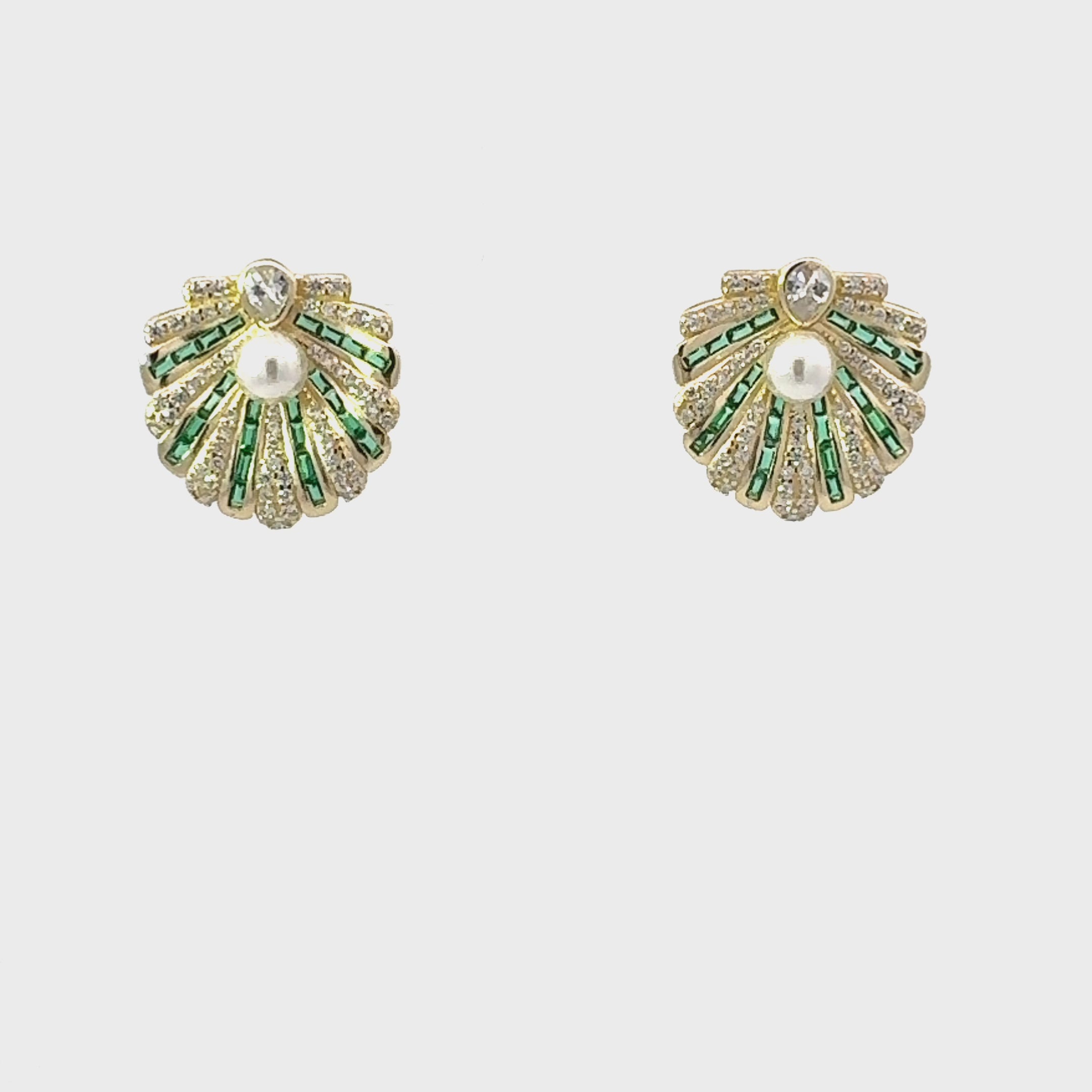 Art Deco Scallop Shell Earrings Emerald Green With Pearl Gold Sale price£69.00 Regular price£99.00