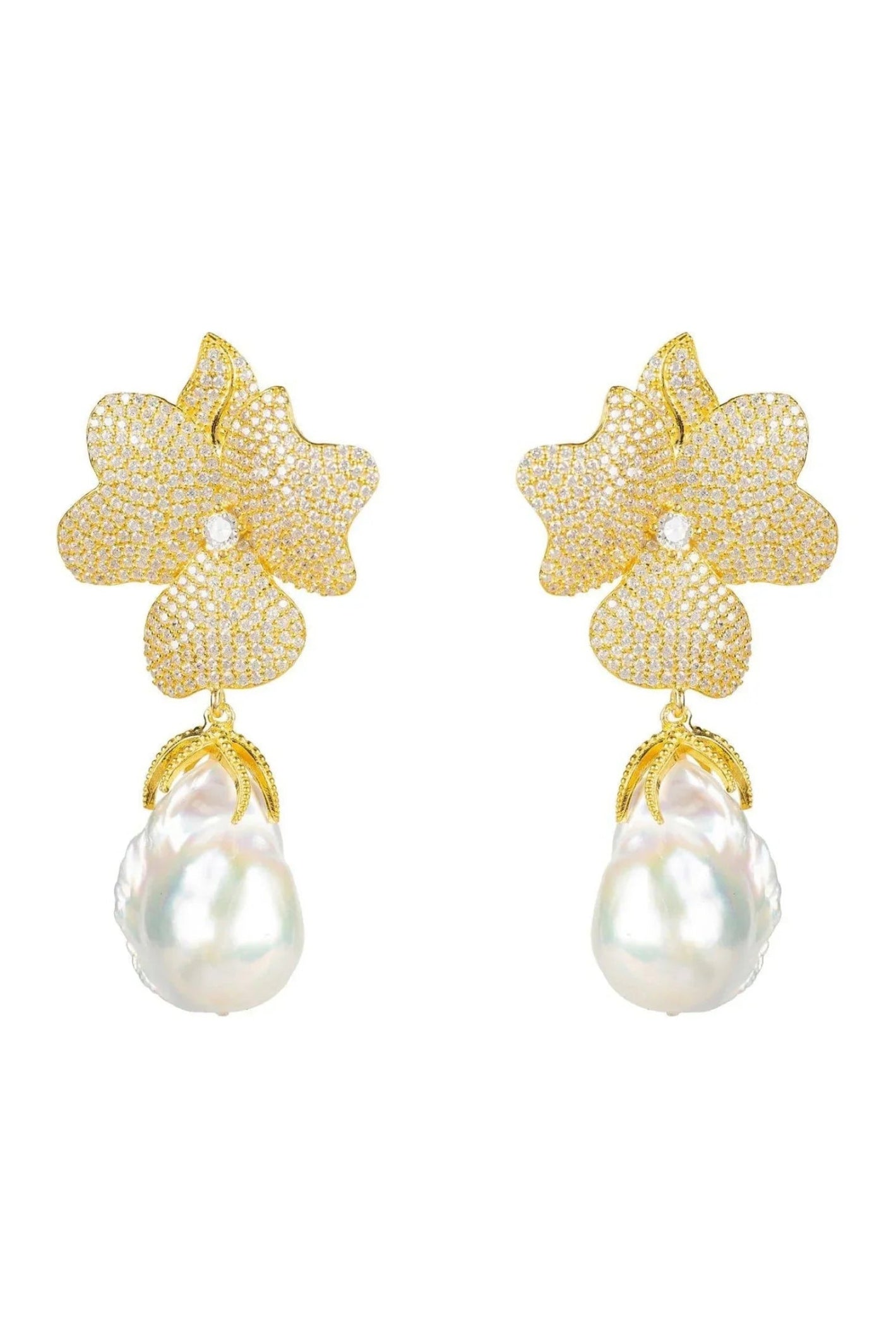 Baroque Pearl White Flower Earrings Yellow Gold - LATELITA Earrings