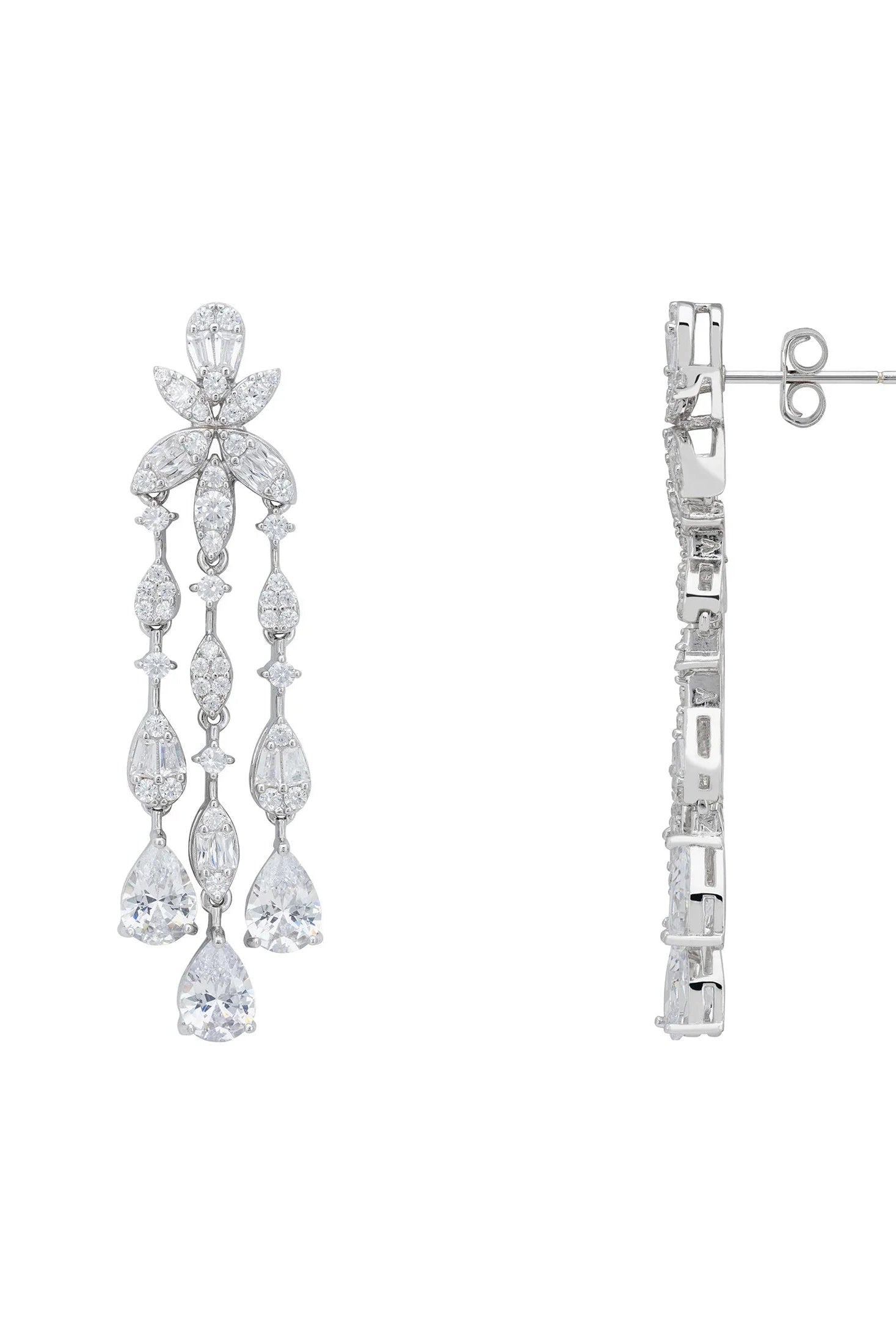 When brilliance is your signature, your earrings deliver in every detail. Made from 925 sterling silver, they open with a floral-inspired design that flows into three elegant strands, all encrusted with shimmering simulated diamonds to maximize light and luxury.