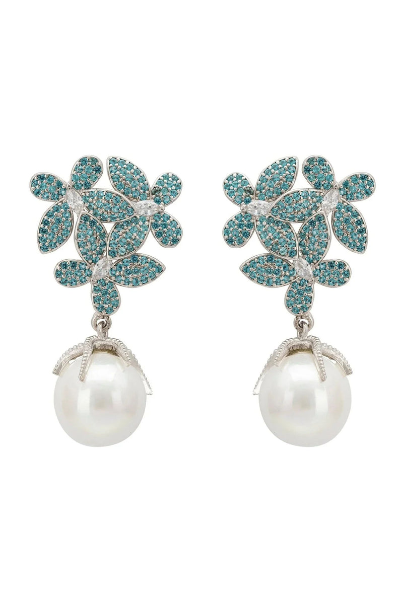 Feel glamorous and delighted in our stunning Flowers Pearl Earrings. Expertly crafted out of 925 sterling silver, these romantic earrings feature a bouquet of three delicate blossoms boasting an abundance of sparkle with lustrous aqua blue cubic zirconia. What makes them extra special? A beautiful pearl dangling provocatively beneath the flowers. This unique piece is the perfect way to bring a little elegance to any look with its timeless gemstone design that never goes out of style.