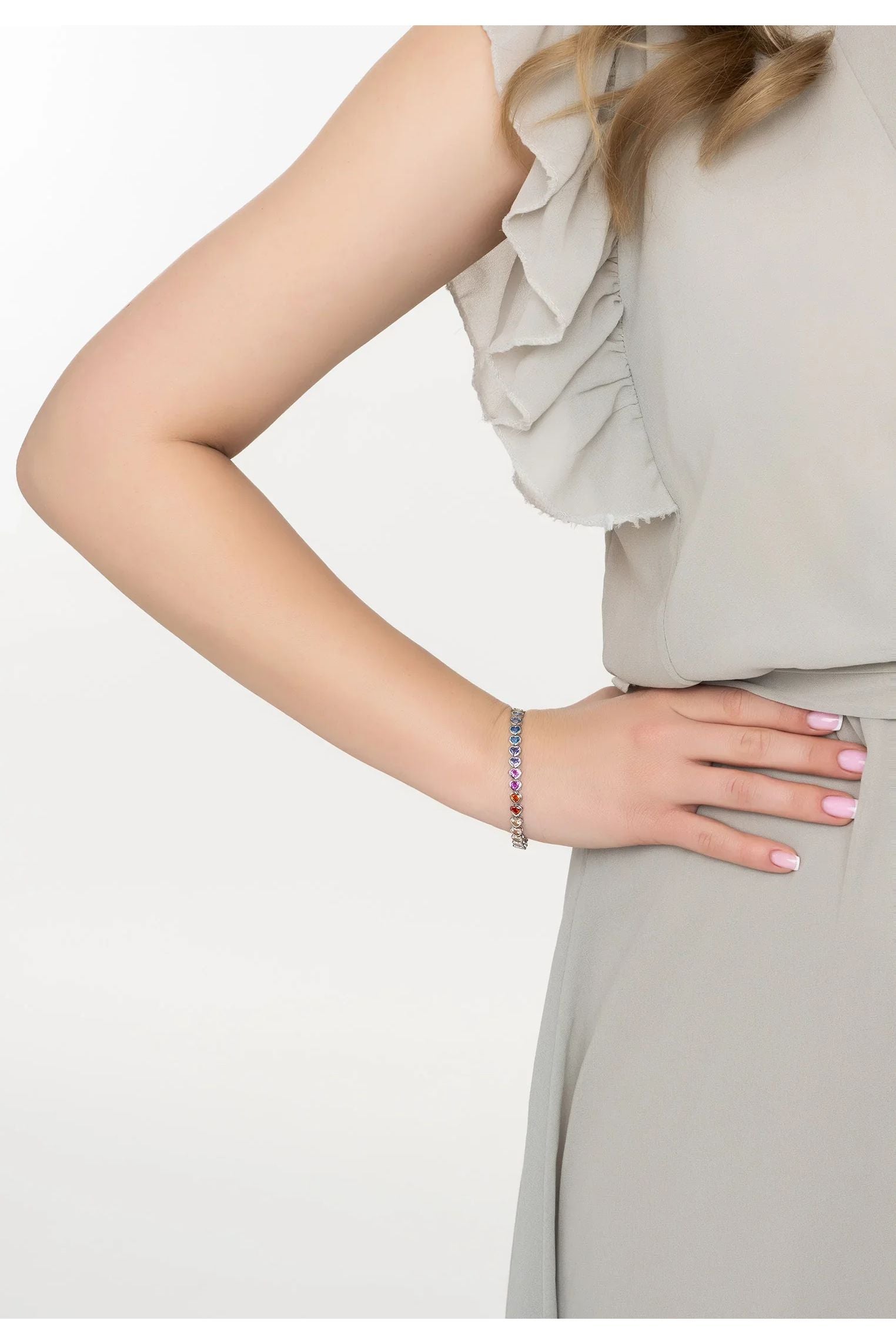 Heart Garland Tennis Bracelet Multicoloured Silver