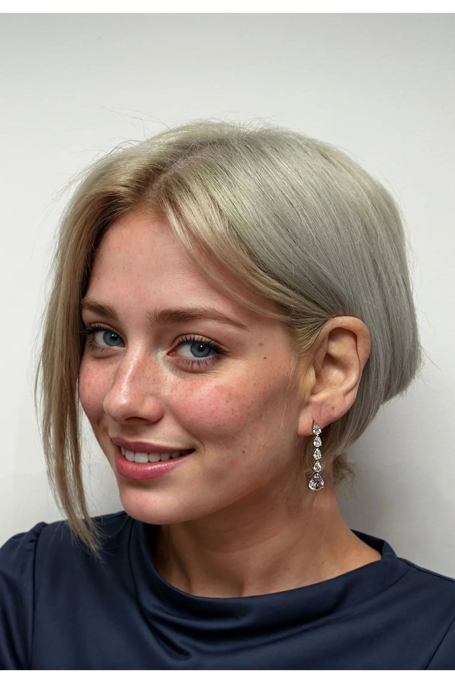 Suspended from a delicate row of four teardrop-cut simulated diamonds, the Jolie Earrings create a cascading effect of light and fire with every movement. Designed with thoughtful proportions measuring 4.0 cm in length, 0.8 cm in width, and weighing just 6.4 grams these earrings are lightweight and comfortable, ensuring you can dazzle all day and night.