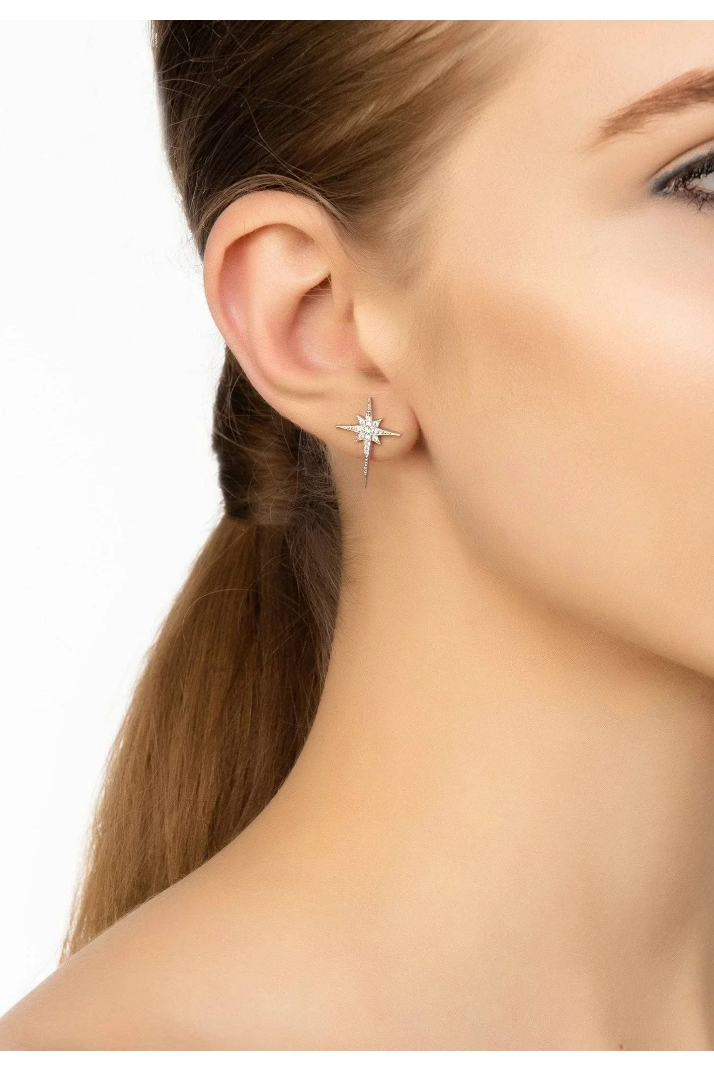 Give your outfits a celestial glow with the North Star Small Stud Earrings. The earrings feature a dainty yet dazzling star, adorned with white zirconia to bring a subtle but stunning sparkle.