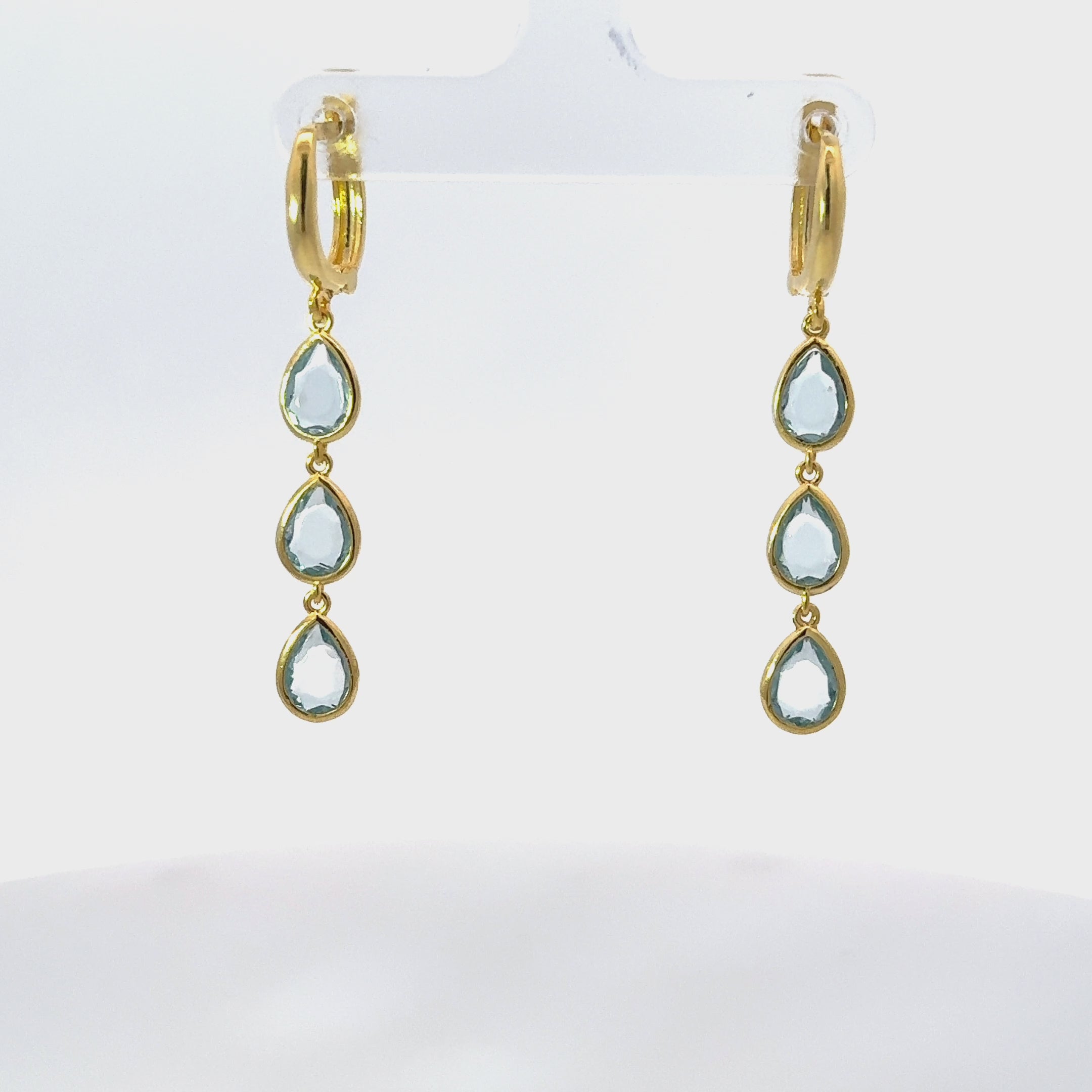 Sardinia Triple Teardrop Earrings Gold Blue Topaz