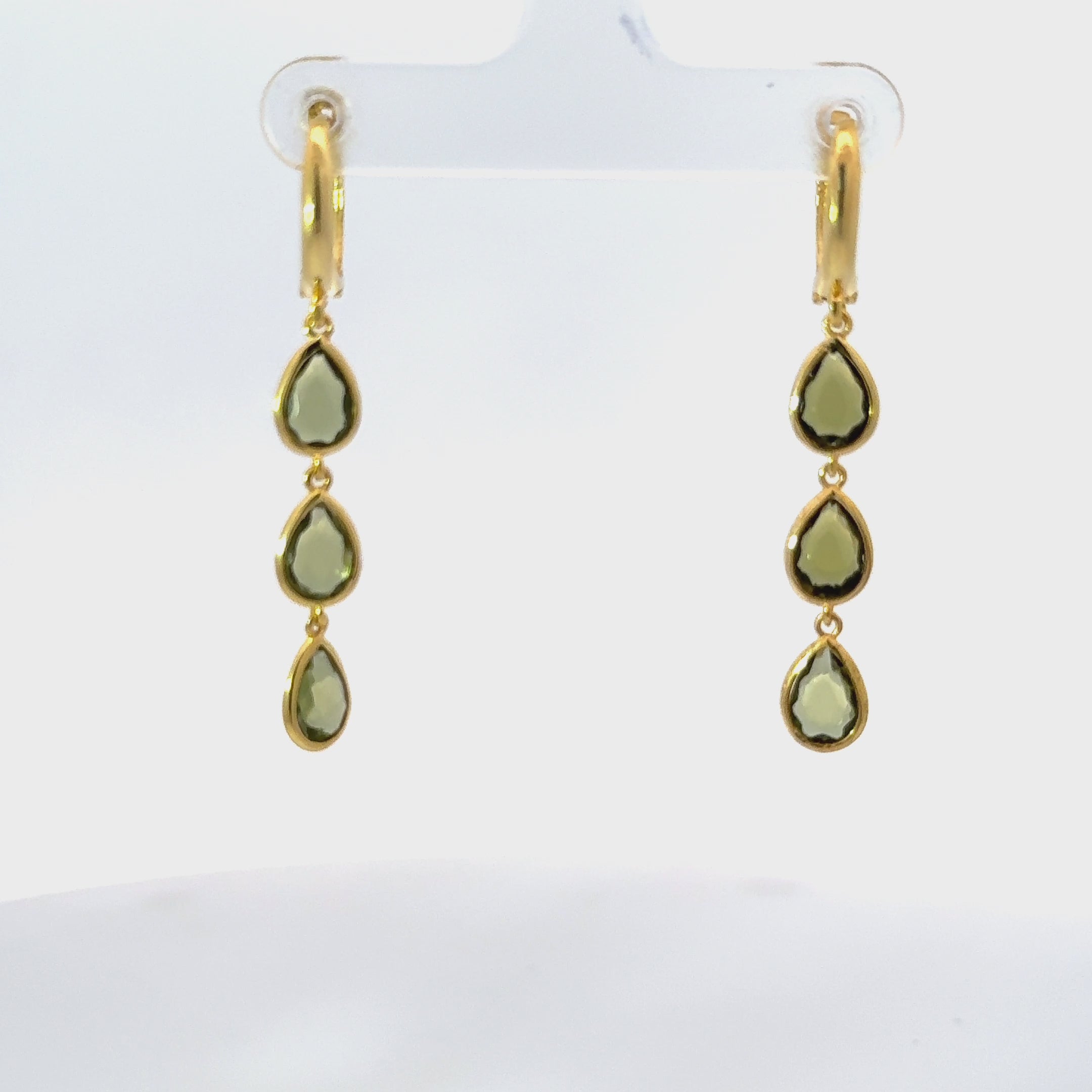Discover the Sardinia Triple Teardrop Earrings Gold Peridot, where elegance cascades in a trio of teardrop cut gemstones.