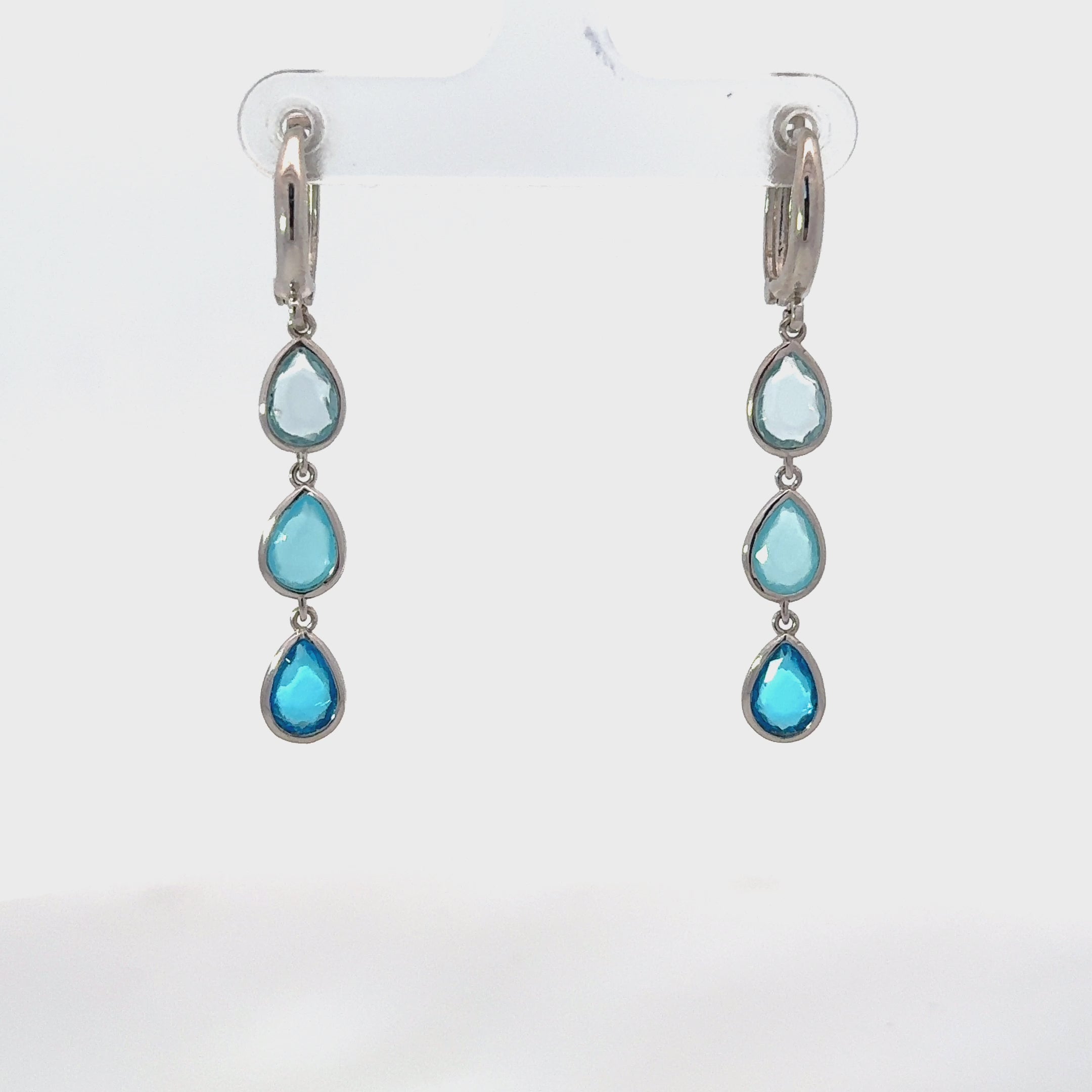 Presenting the Sardinia Triple Teardrop Earrings Silver The Blues, a symphony of azure elegance.