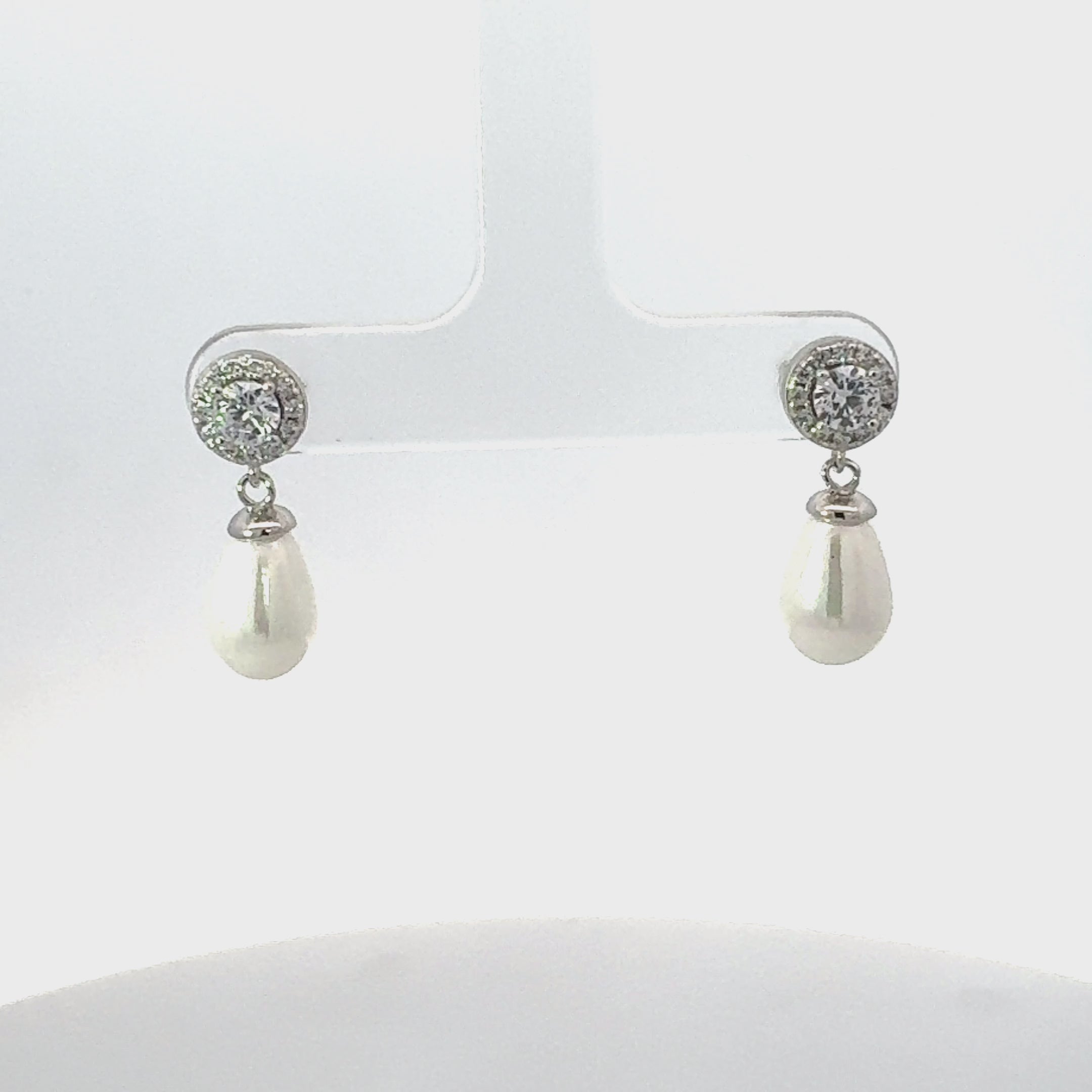 Dive into the elegance of the Timeless Pearl Teardrop Earrings, a masterpiece crafted with the finest 925 sterling silver. Each earring delicately dangles a teardrop-shaped pearl, embodying purity and grace, making it an impeccable choice for wedding adornments. The earring top sparkles with a radiant zircon centrepiece, encircled by a halo of petite zircons, adding a touch of glamour to your ensemble.Β