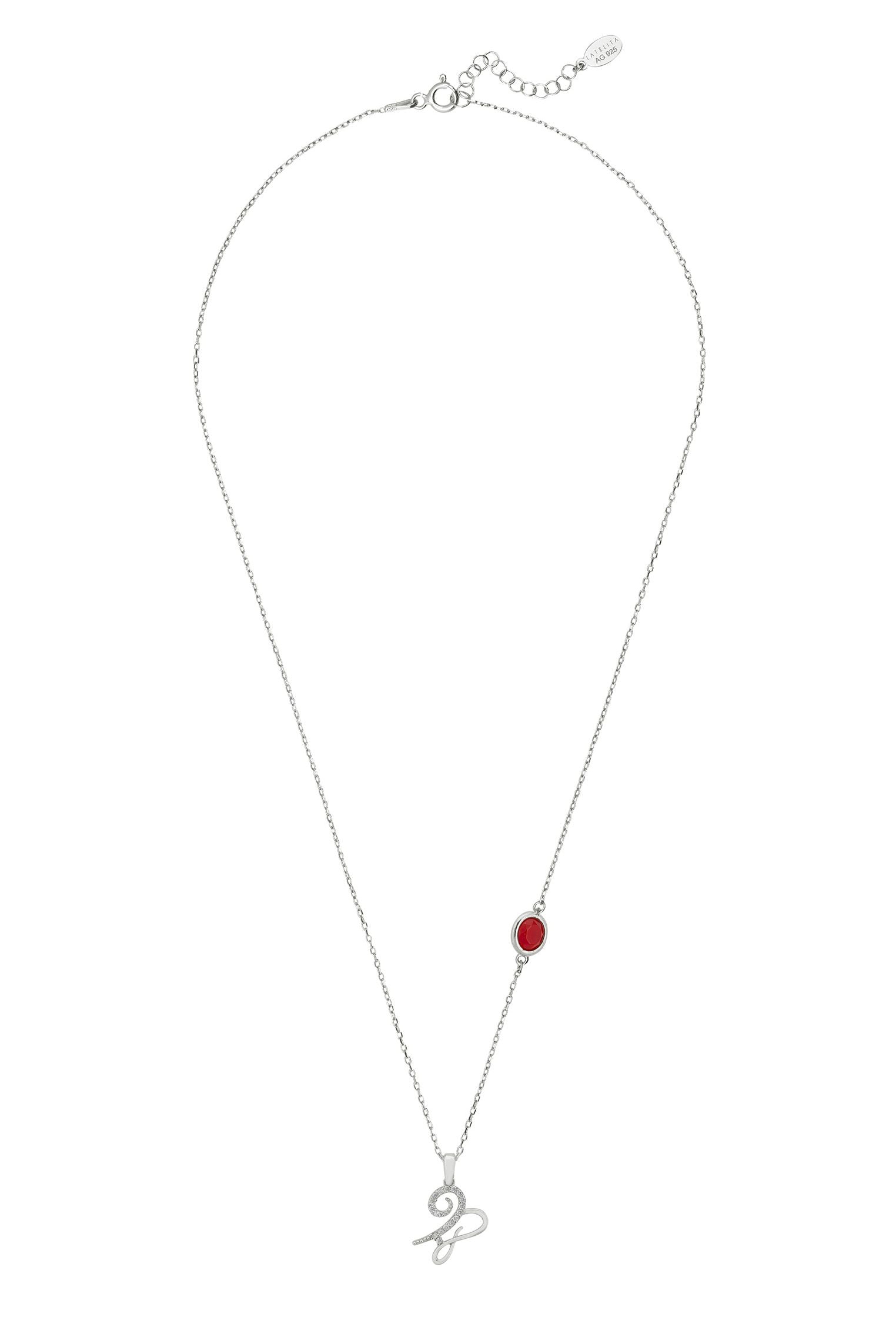 This zodiac necklace made with 925 sterling silver features the star sign of the goat which is set with sparkling cubic zirconia, gracefully leading to a lab-created Garnet set along the 40-45cm chain.