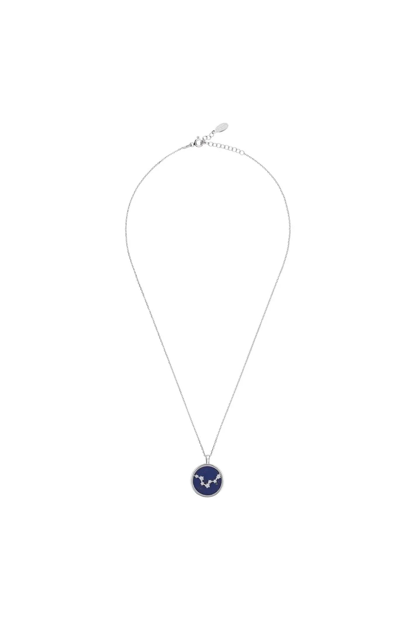 Discover the beauty of your star sign with this sophisticated zodiac lapis lazuli gemstone pendant necklace. Crafted from 925 sterling silver, the exquisite lapis lazuli stone background gives off an impressive dark blue hue which perfectly enhances the white cubic zirconia star constellation. The reverse is just as beautiful, featuring cut-out stars where the lapis lazuli discretely peeps through - not to mention the engraved name of your star sign.