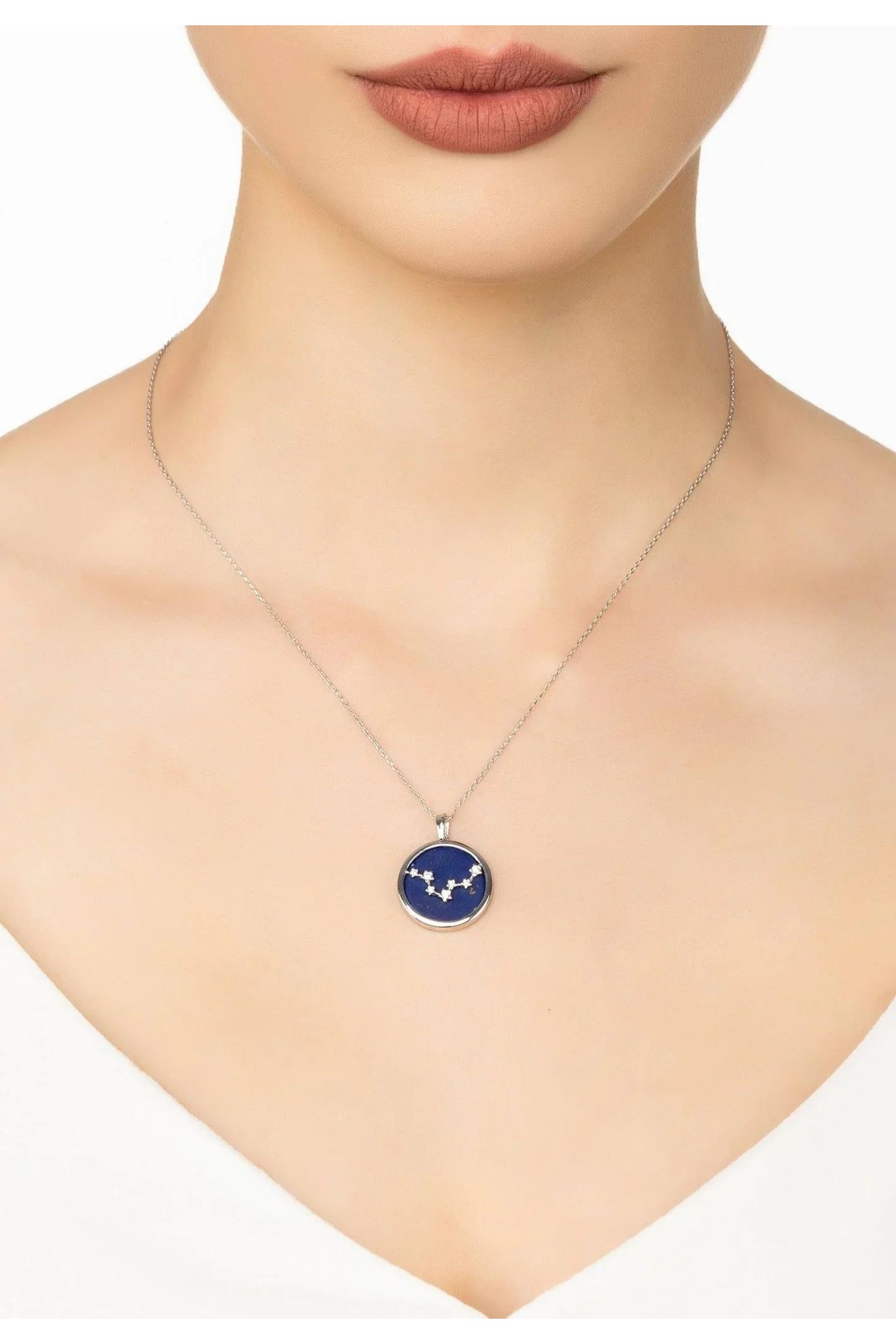 Zodiac Lapis Lazuli Gemstone Star Constellation Pendant Necklace Silver Pisces - LATELITA Necklaces