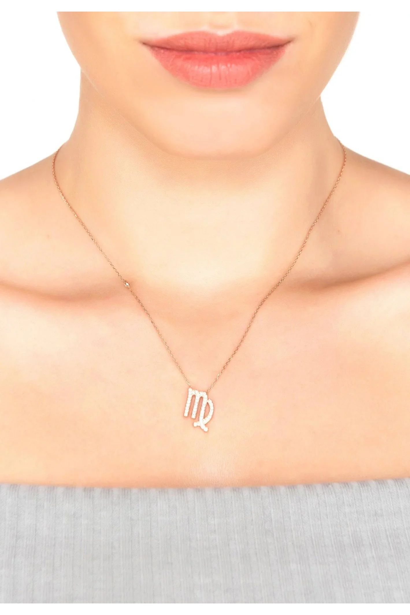 Zodiac Star Sign Pendant Necklace Rose Gold Virgo